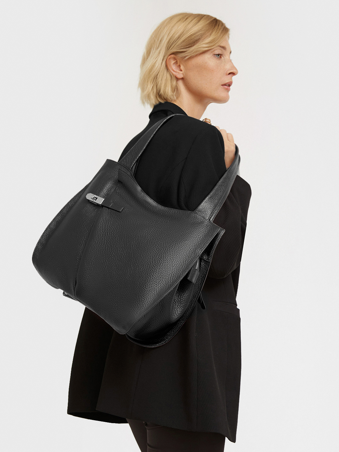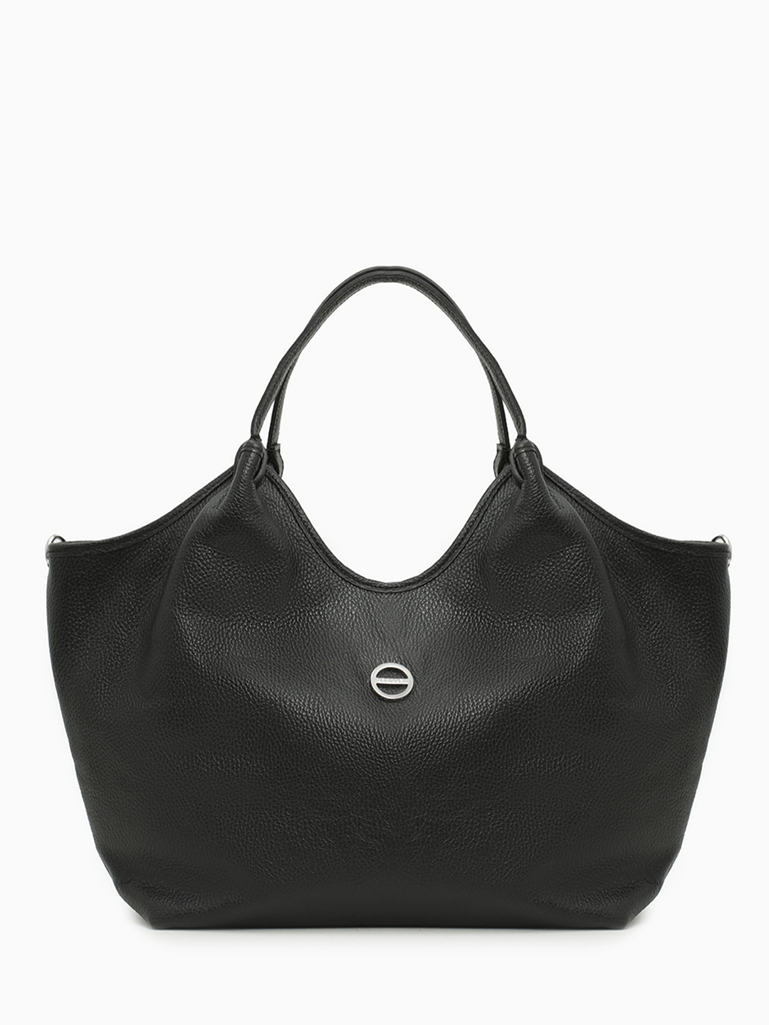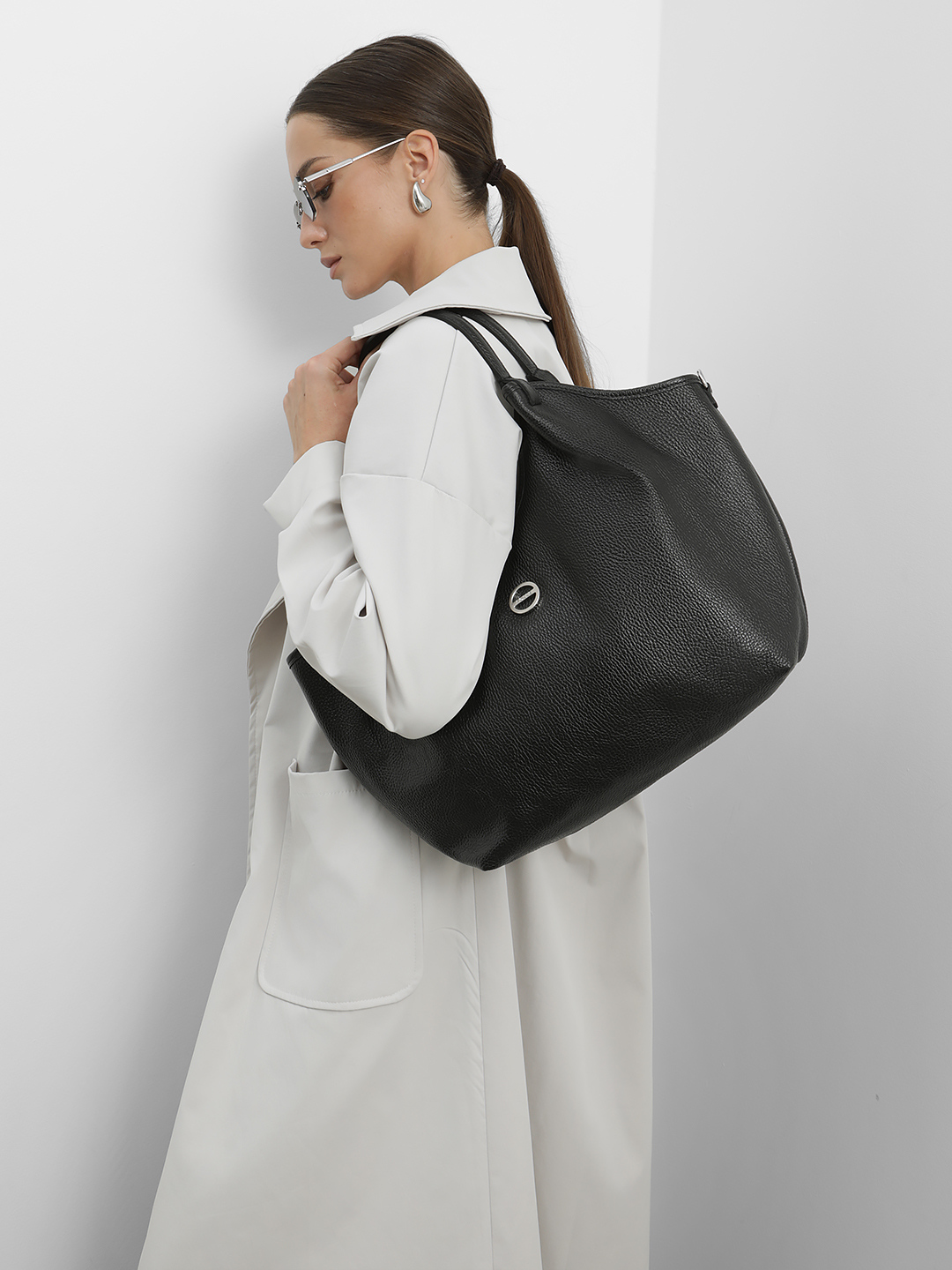 Чёрный шоппер в форме трапеции с круглой брендированной фурнитурой FOLLE