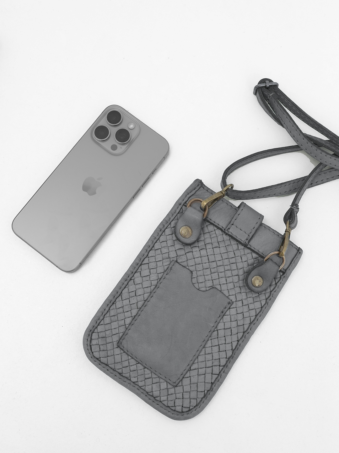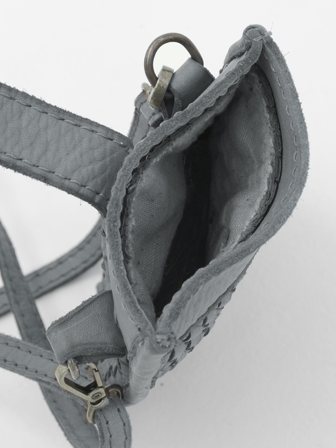 Мини сумка для телефона из винтажной кожи с плетением в сером оттенке от FOLLE