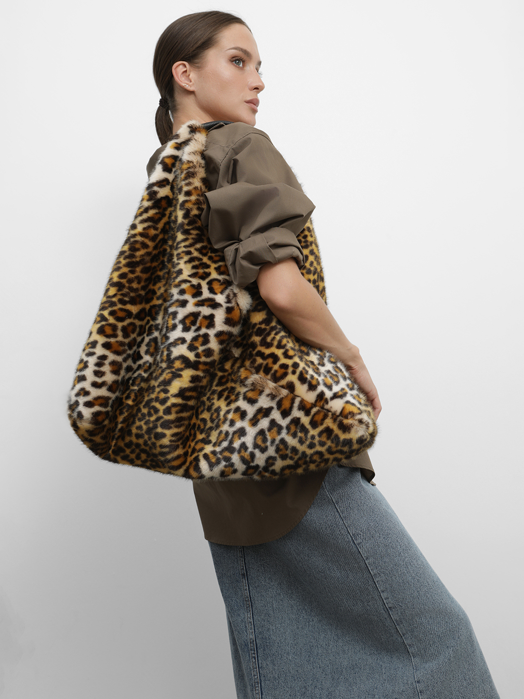 Мягкий шоппер из искусственного меха с принтом леопарда