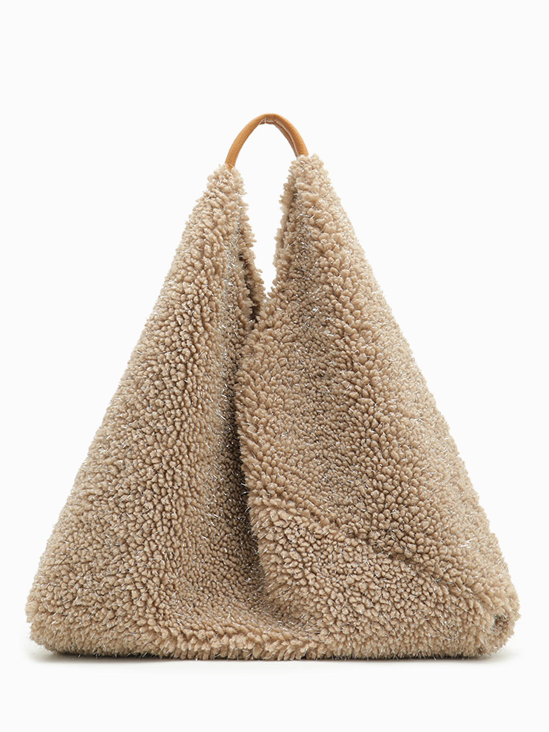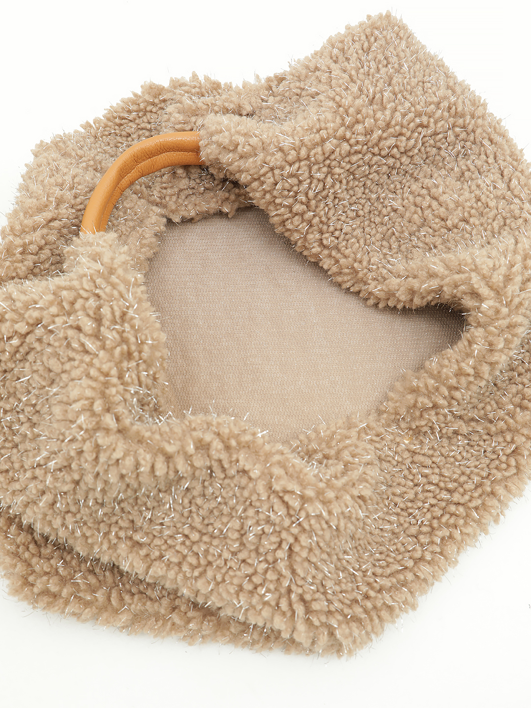 Мягкий шоппер из искусственного меха с серебристым люриксом в цвете тауп
