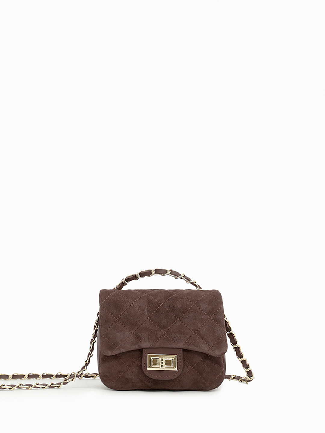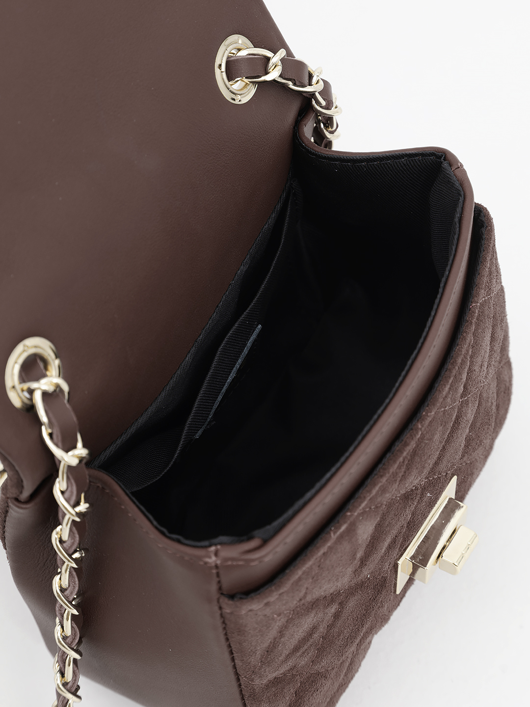 Небольшая кросс-боди с ремнём цепочкой от BE NICE из натуральной замши и кожи тёмно-коричневого цвета