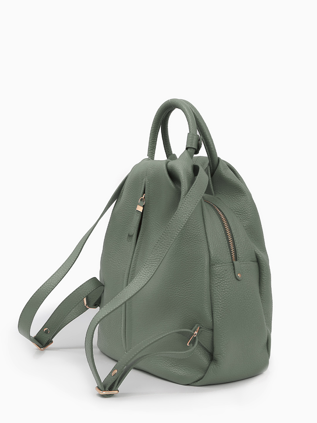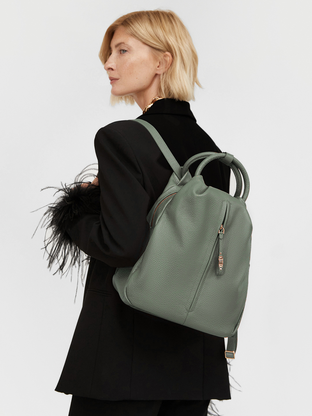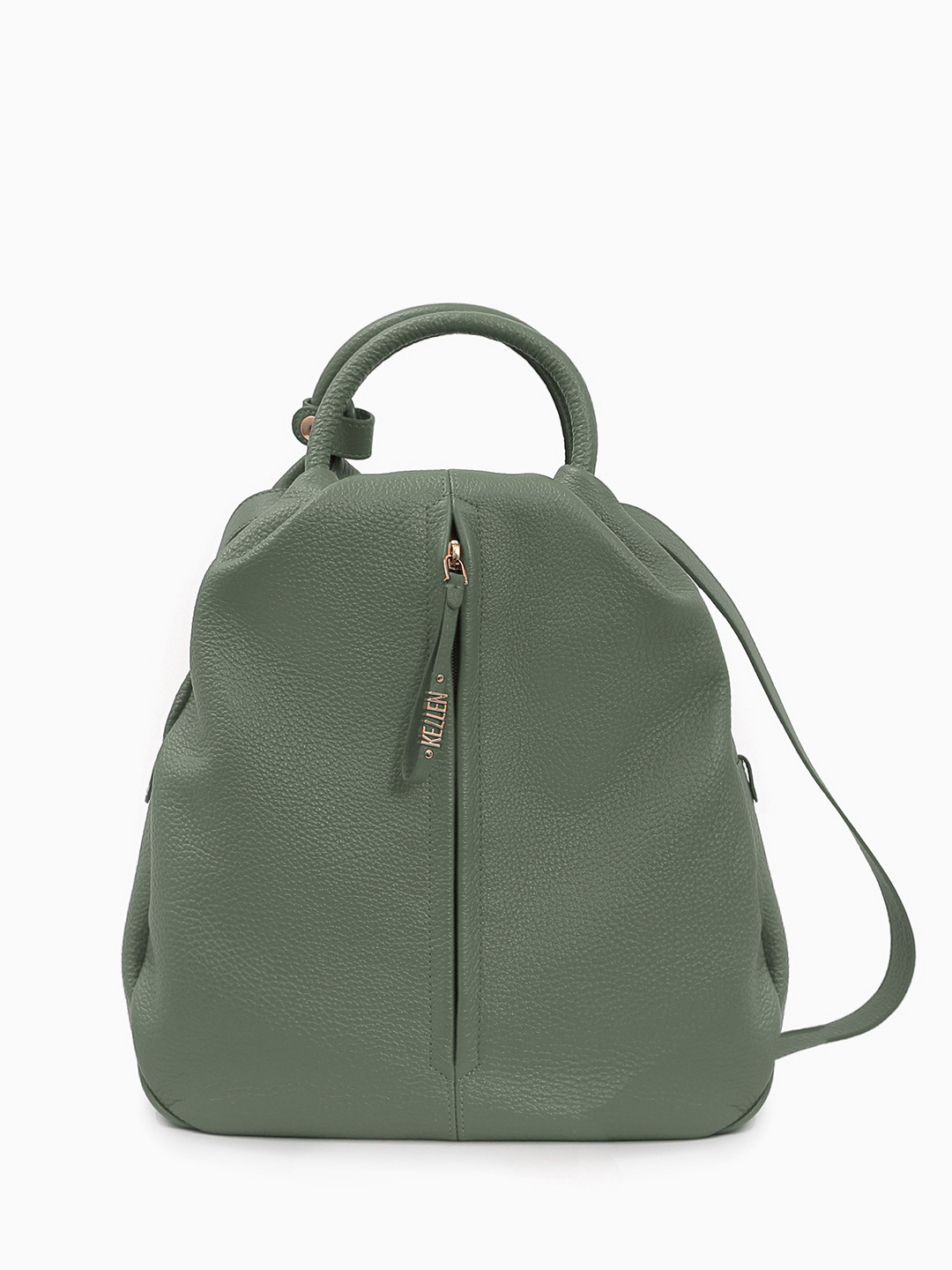 Сумка-рюкзак с круглой ручкой из натуральной кожи зелёного цвета от KELLEN