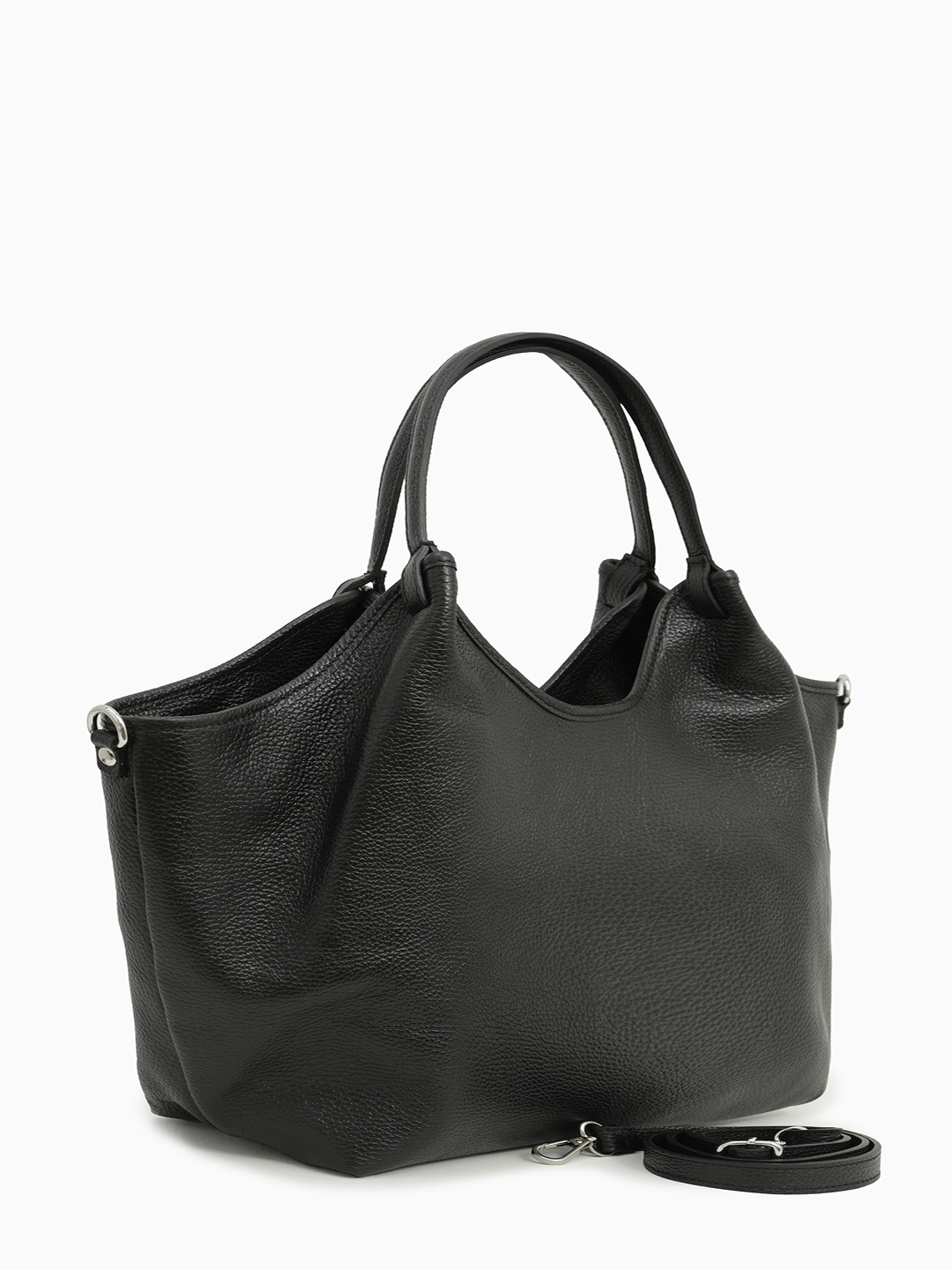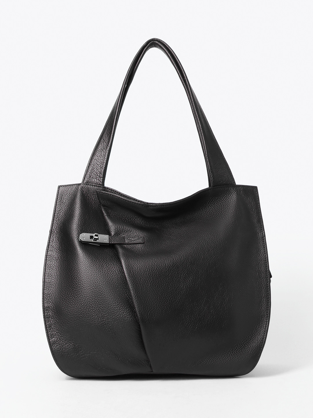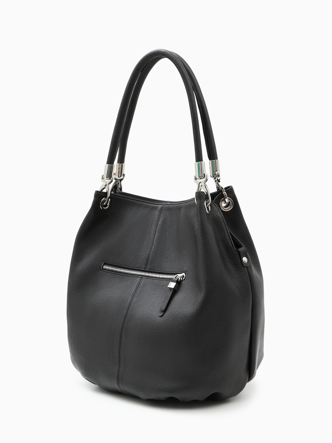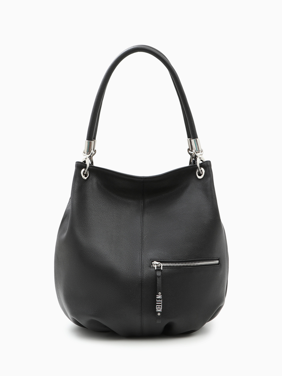 Сумка-мешок из натуральной кожи с серебристой фурнитурой от KELLEN в чёрном цвете