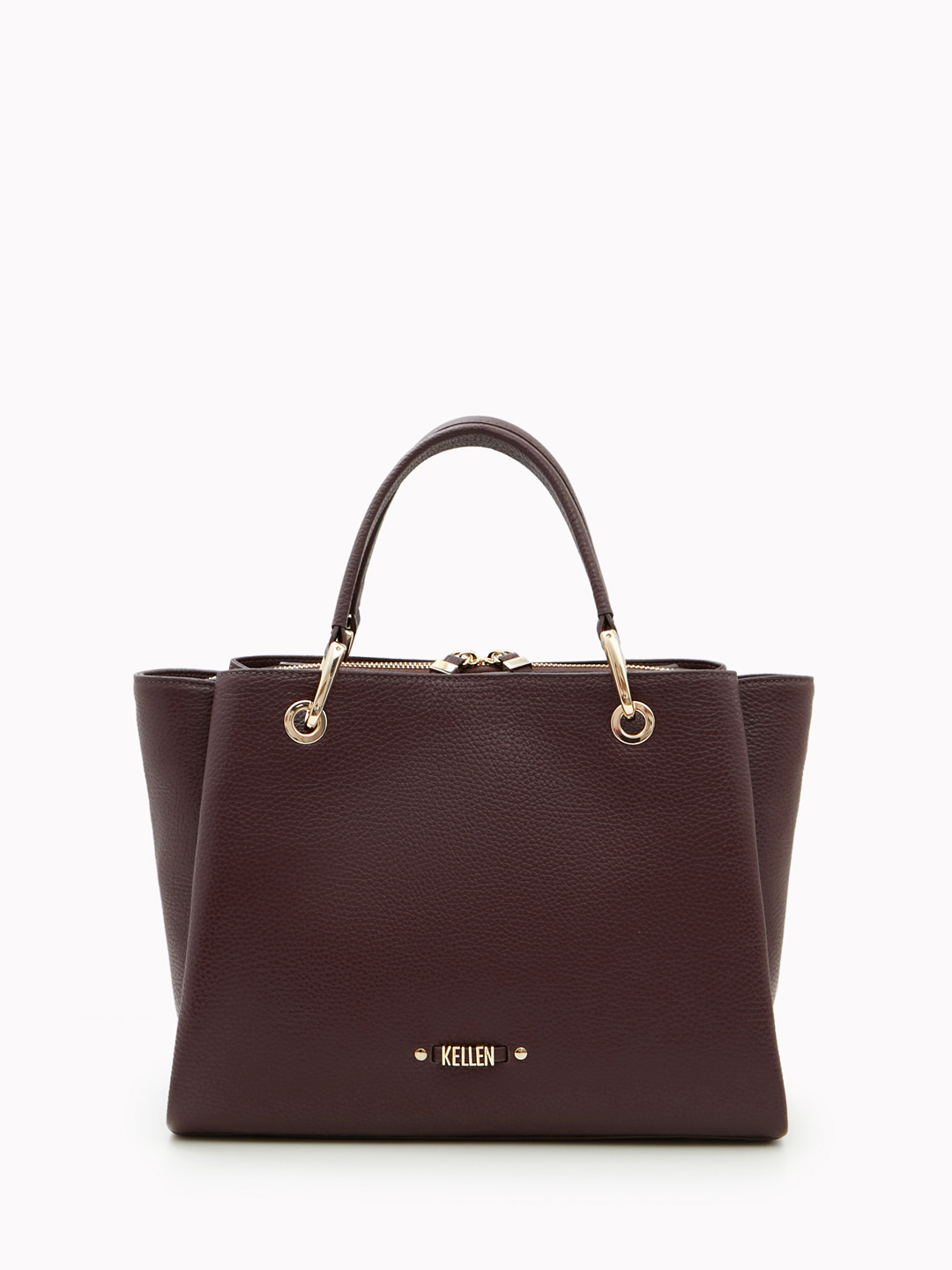 Сумка-тоут с патчем из металлических букв от KELLEN в бордовом цвете