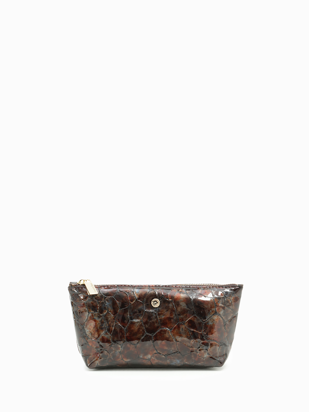 Косметичка от бренда Alessandro Beato из натуральной лаковой кожи коричневого цвета