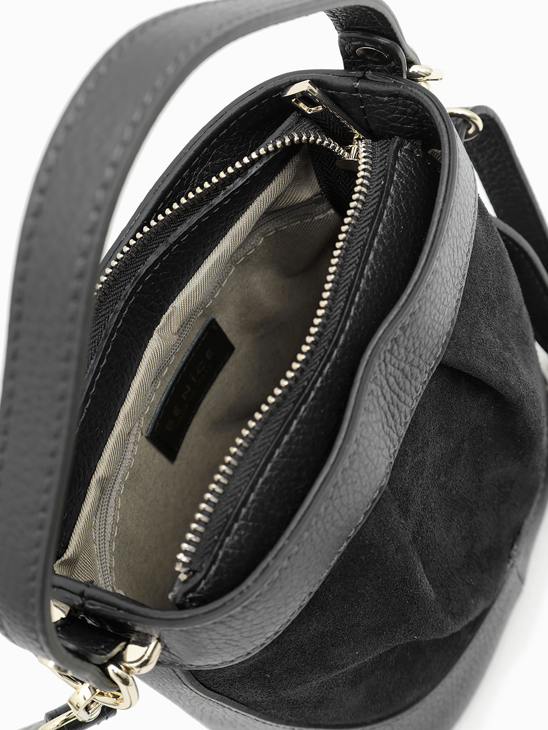 Небольшая сумка в чёрном цвете из натуральной кожи и замши от BE NICE