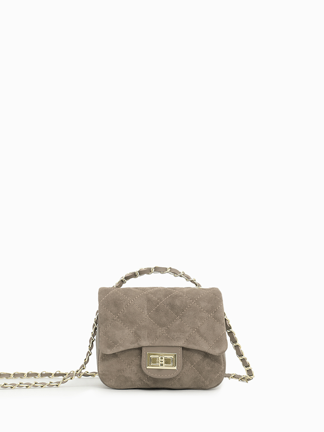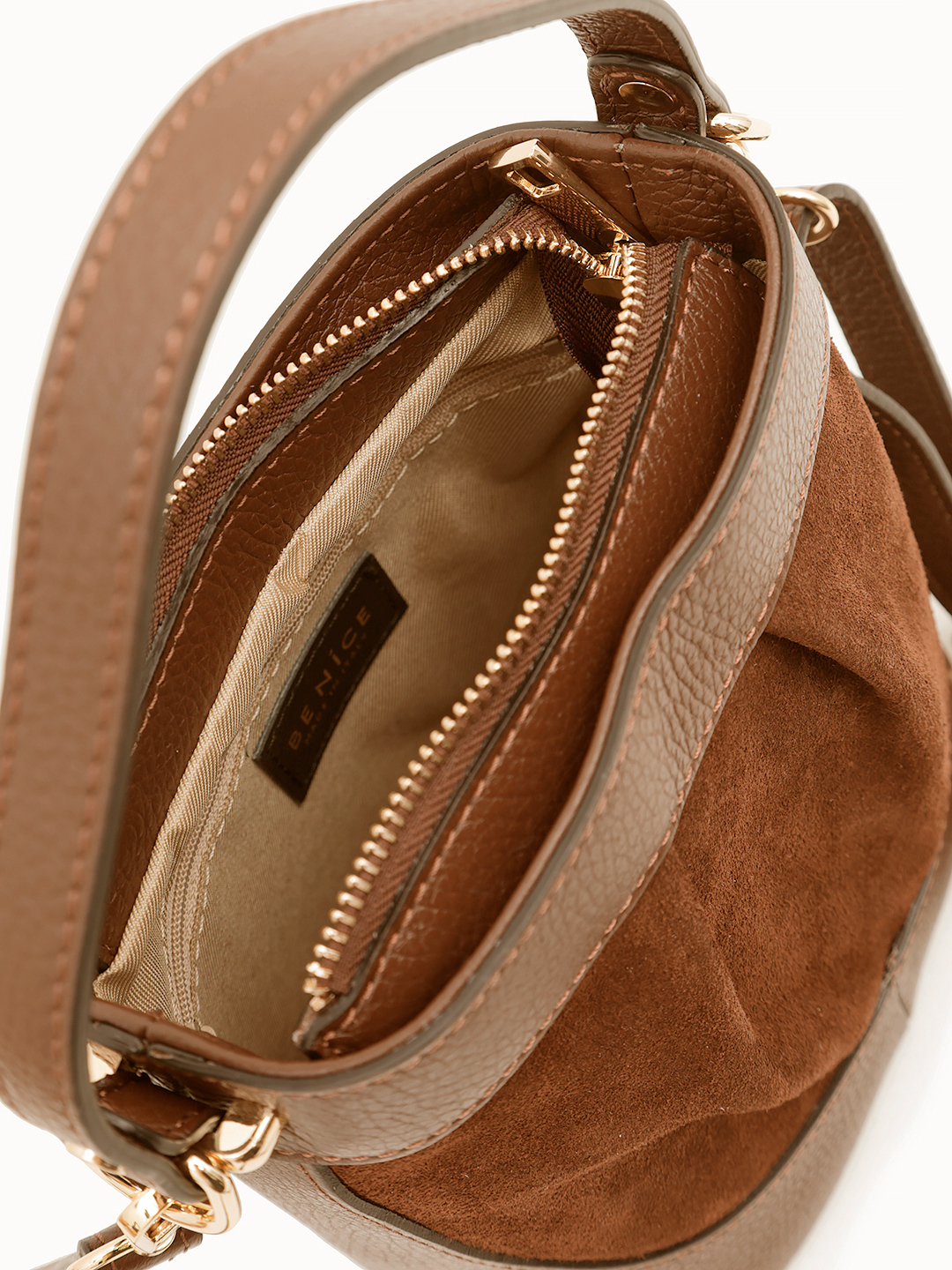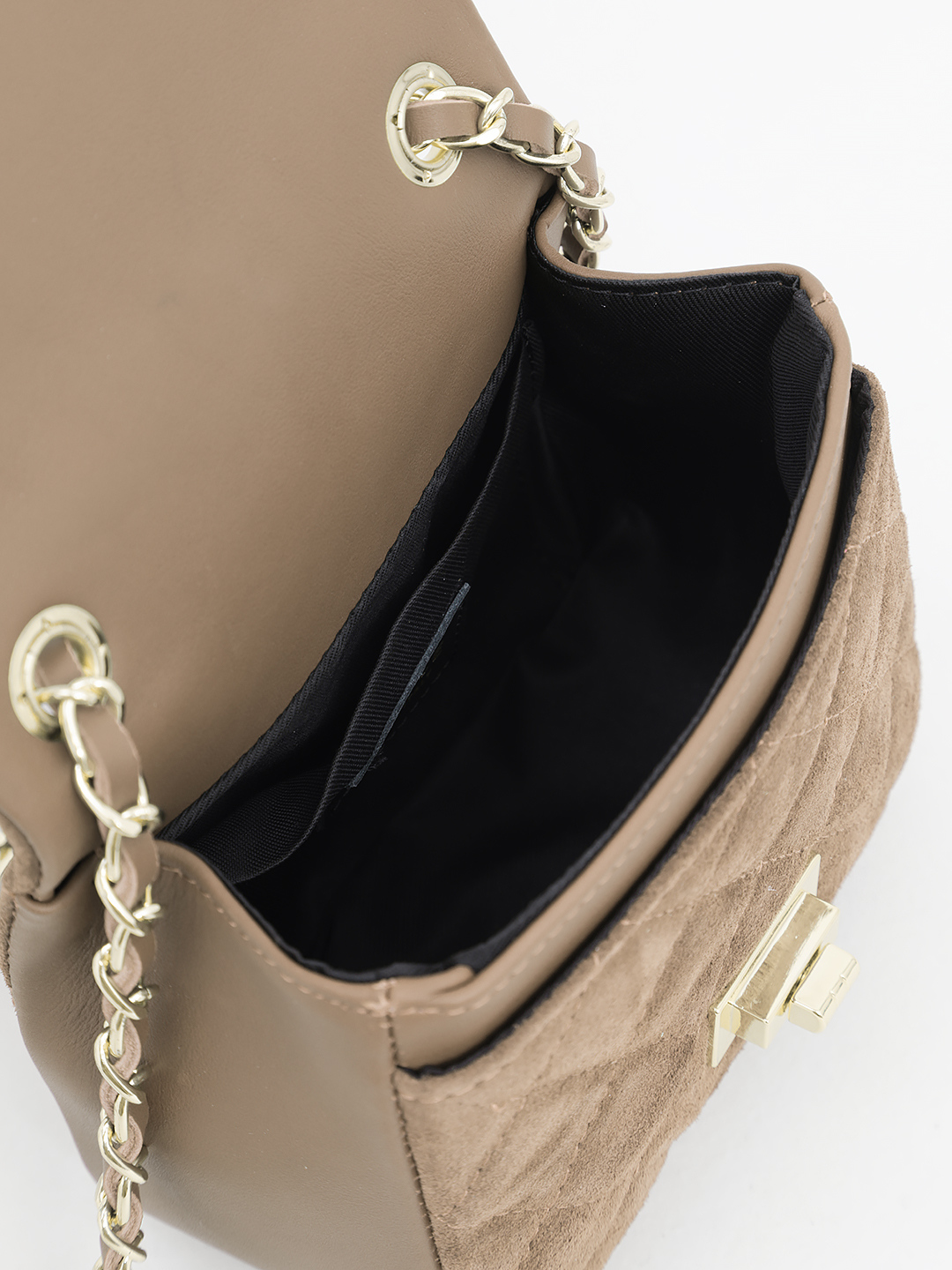 Небольшая кросс-боди с ремнём цепочкой от BE NICE из натуральной замши и кожи цвета тауп