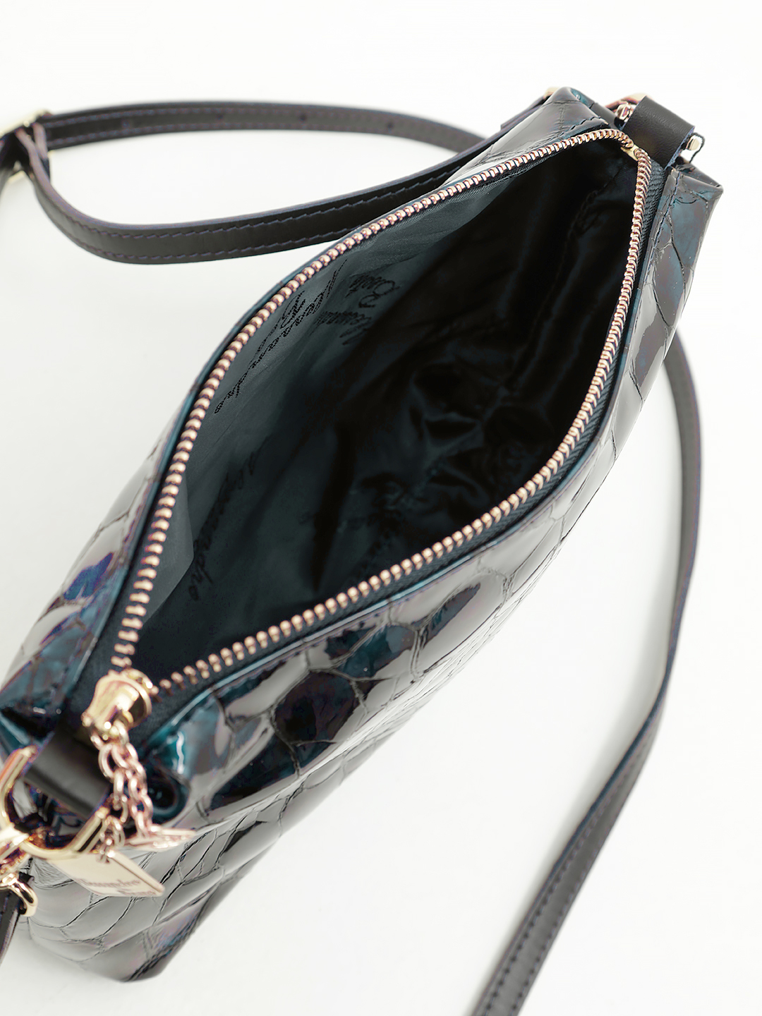 Кросс-боди на плечо Alessandro Beato в лаковой натуральной коже синего цвета