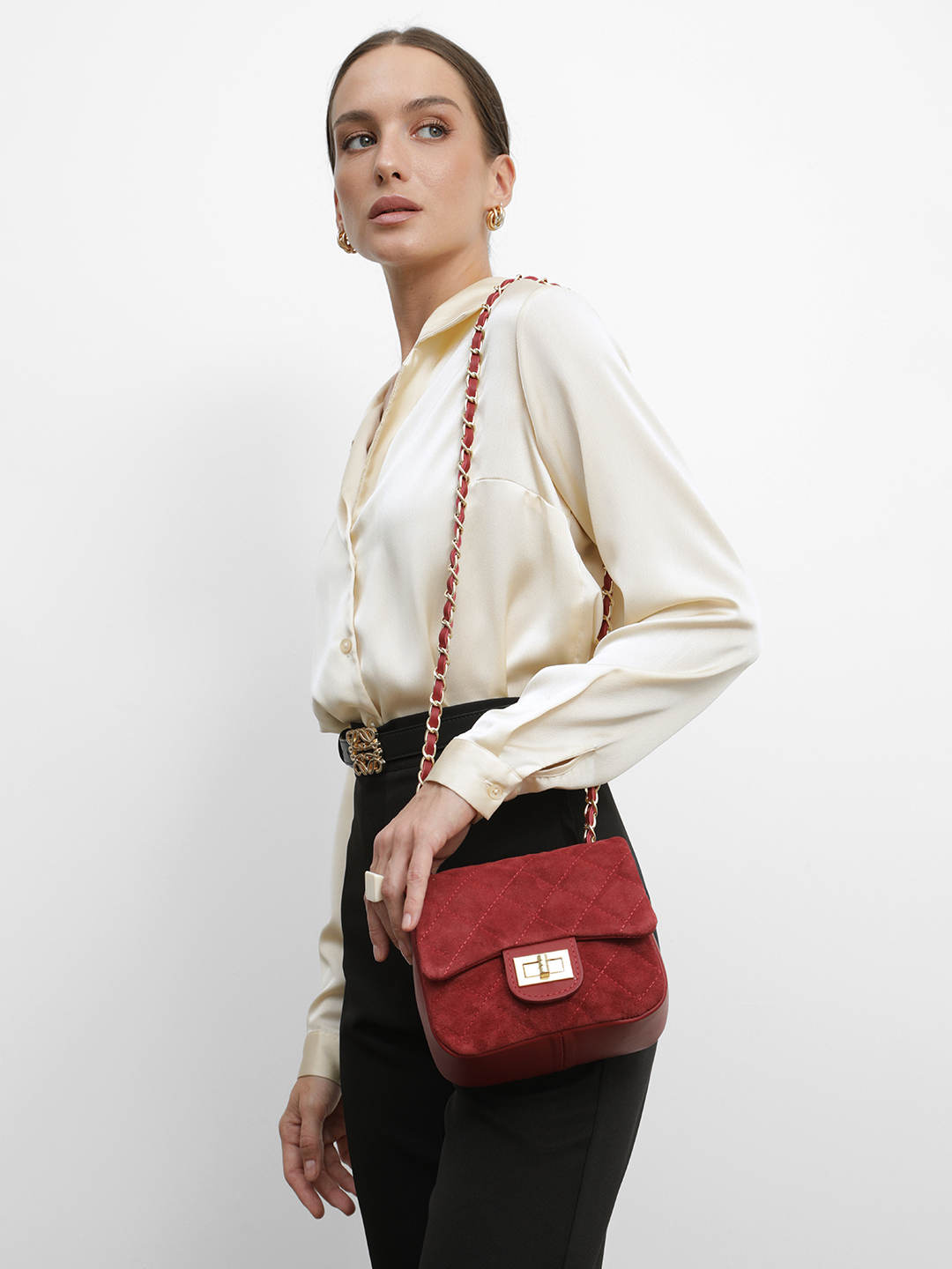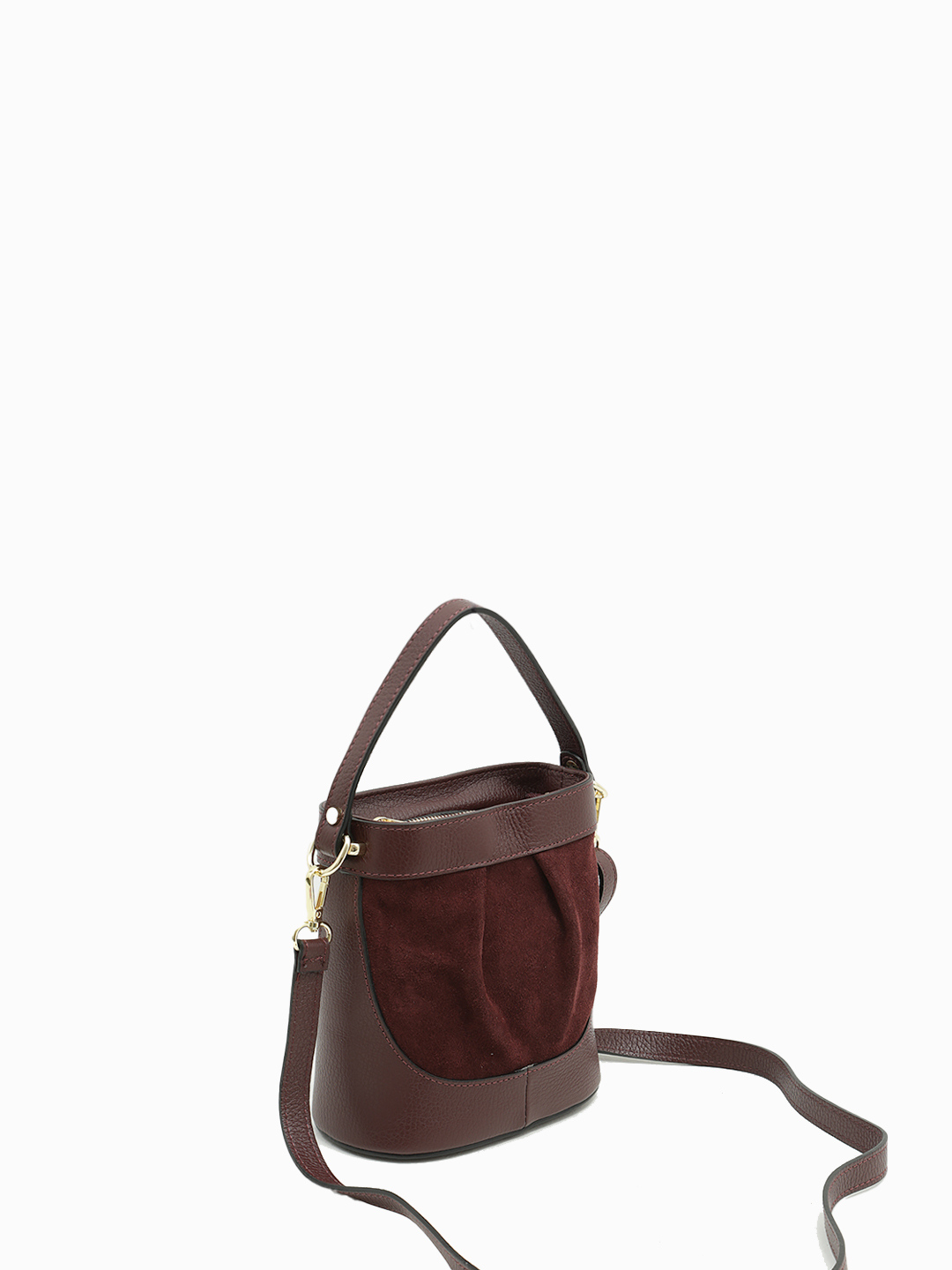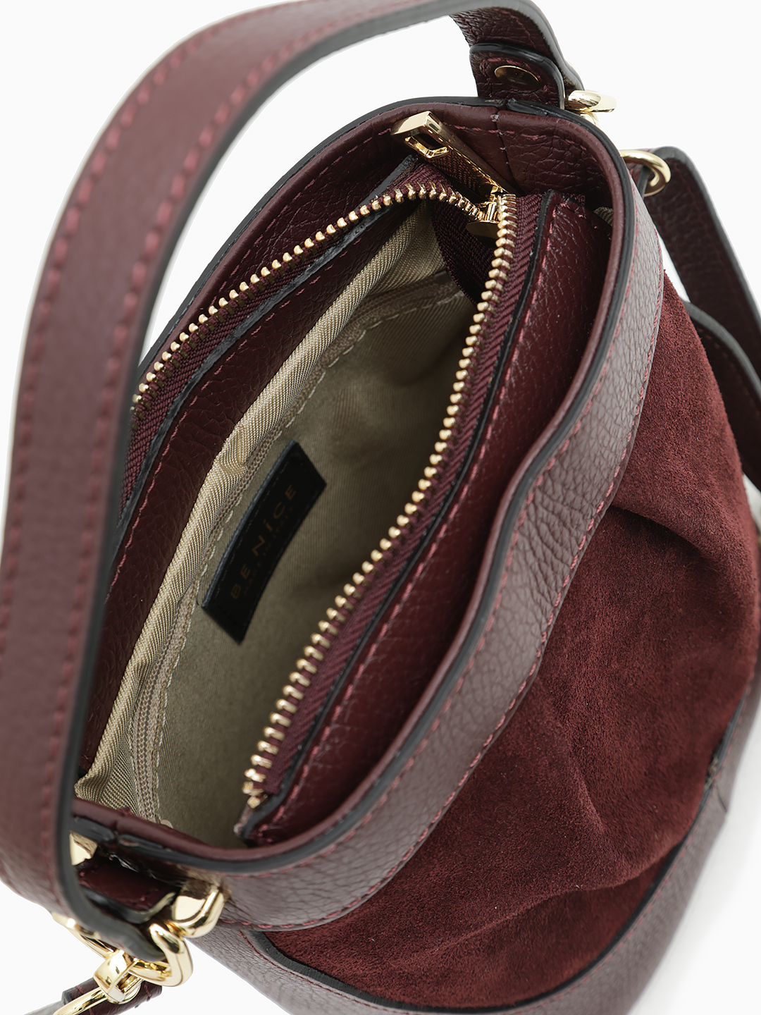Небольшая сумка в бордовом цвете из натуральной кожи и замши от BE NICE