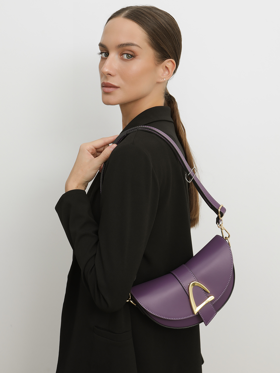 Небольшой боулер SOFIA с клапаном от BE NICE из натуральной кожи лилового цвета