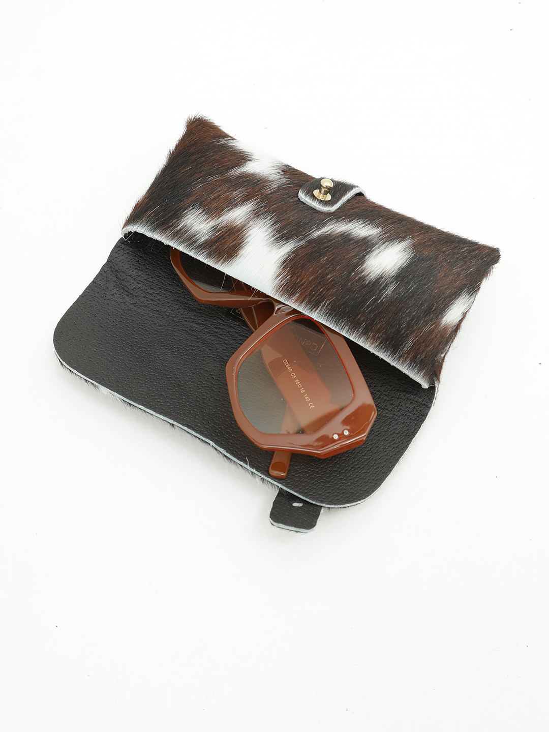 Очечник из натурального меха от FOLLE с анималистичным принтом корова