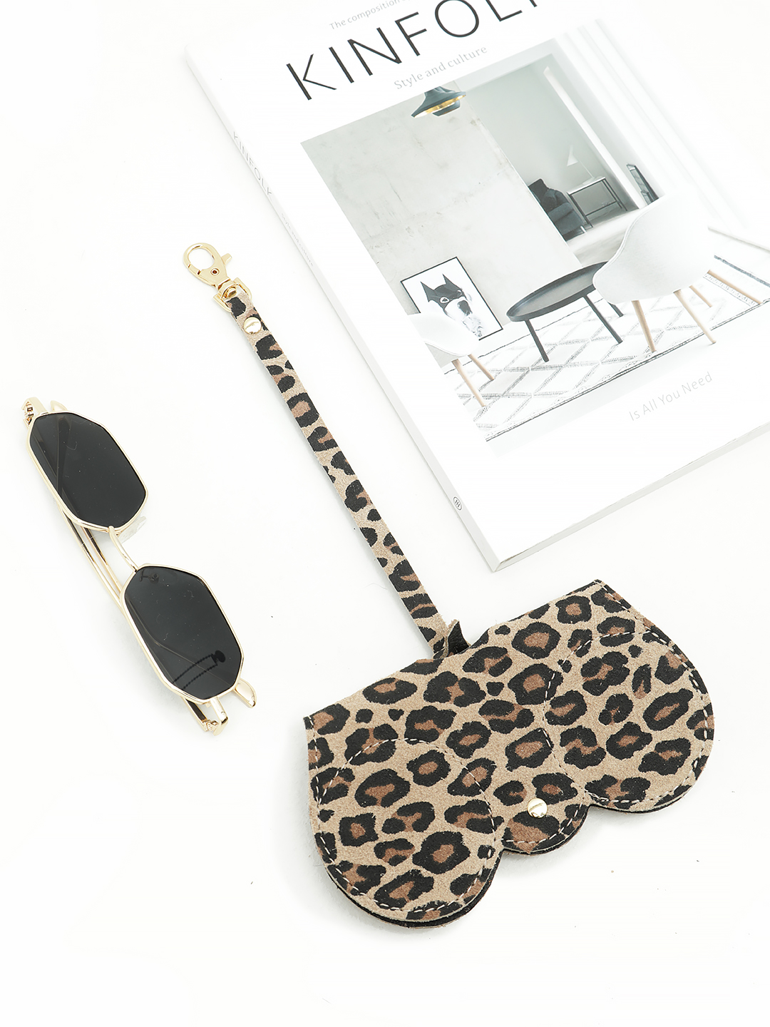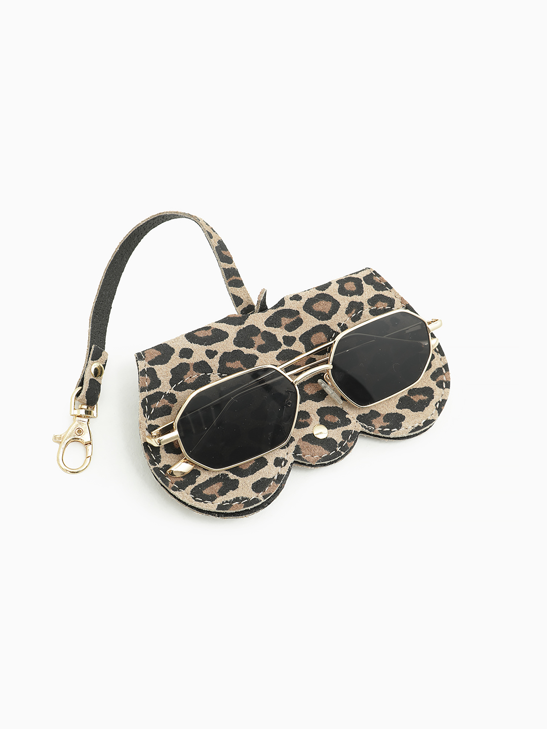 Очечник-подвеска на сумку от FOLLE из натуральной замши с анималистичным принтом
