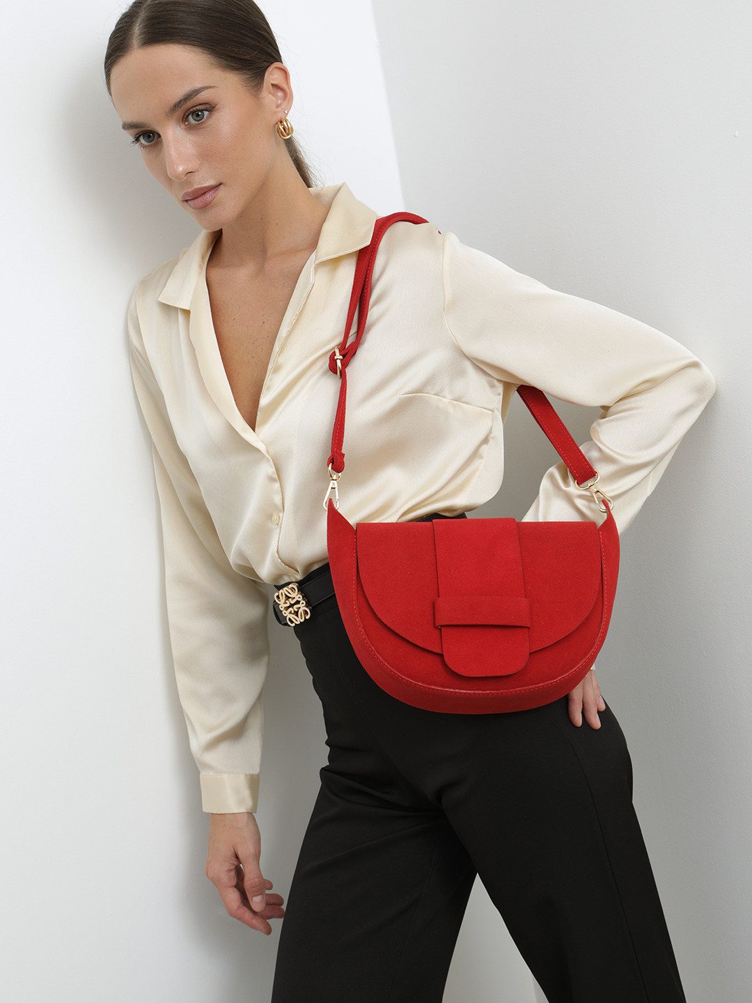 Боулер среднего размера из натуральной замши алого цвета от BE NICE
