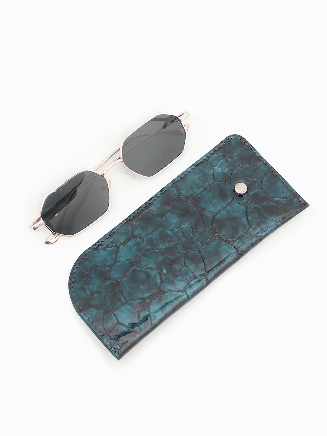 Очечник от бренда Alessandro Beato из натуральной лаковой кожи синего цвета