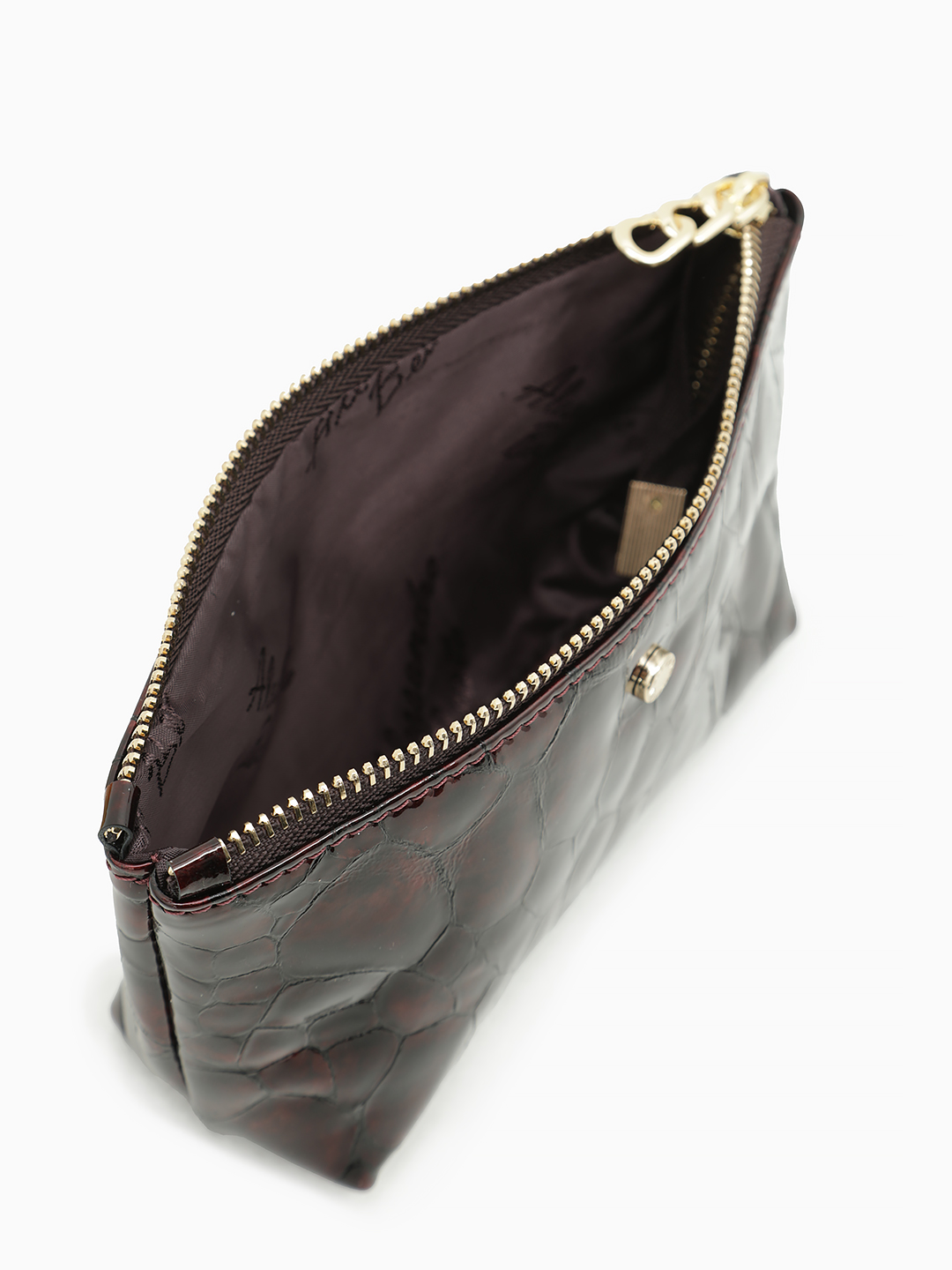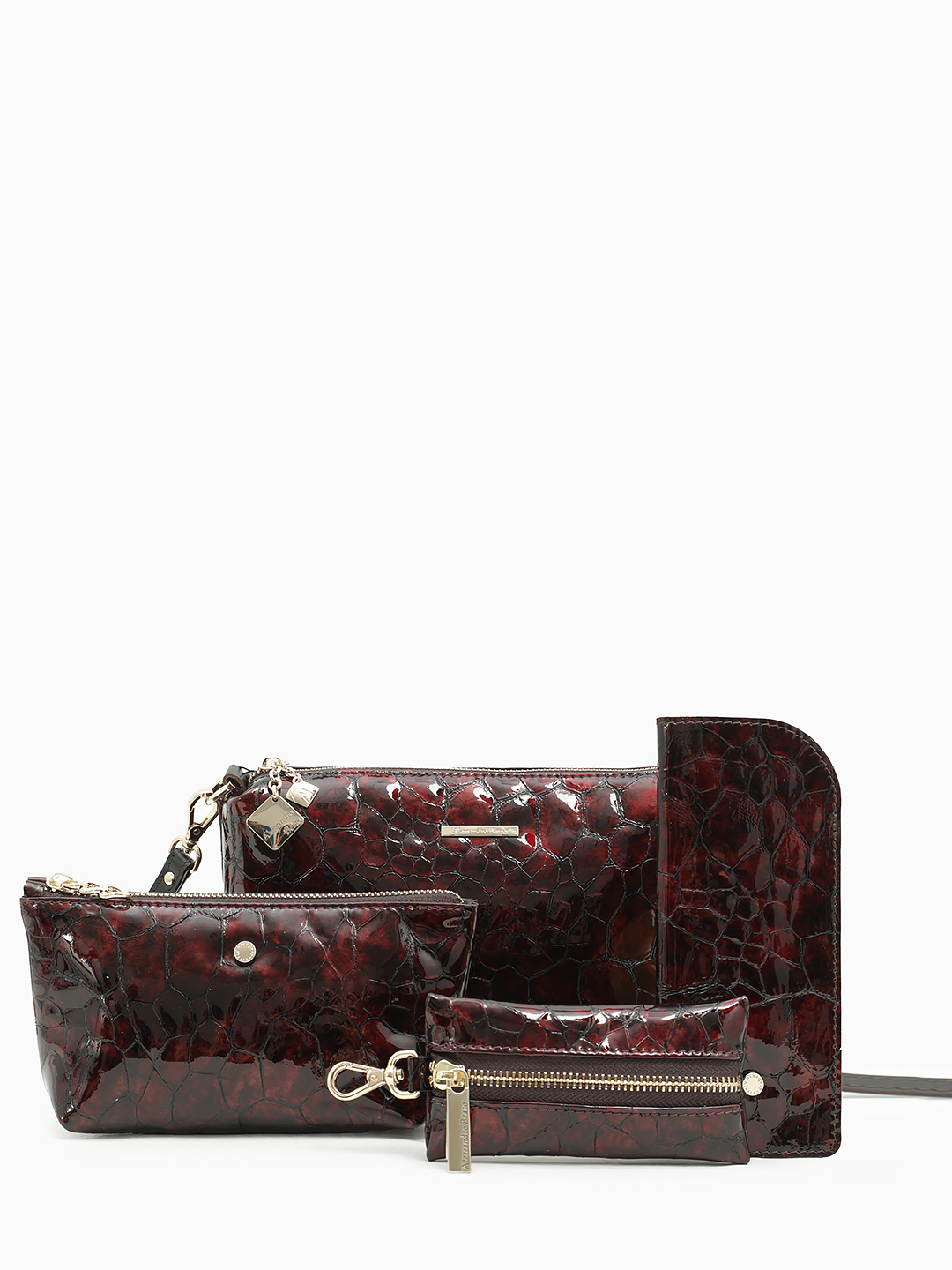 Косметичка от бренда Alessandro Beato из натуральной лаковой кожи винного цвета