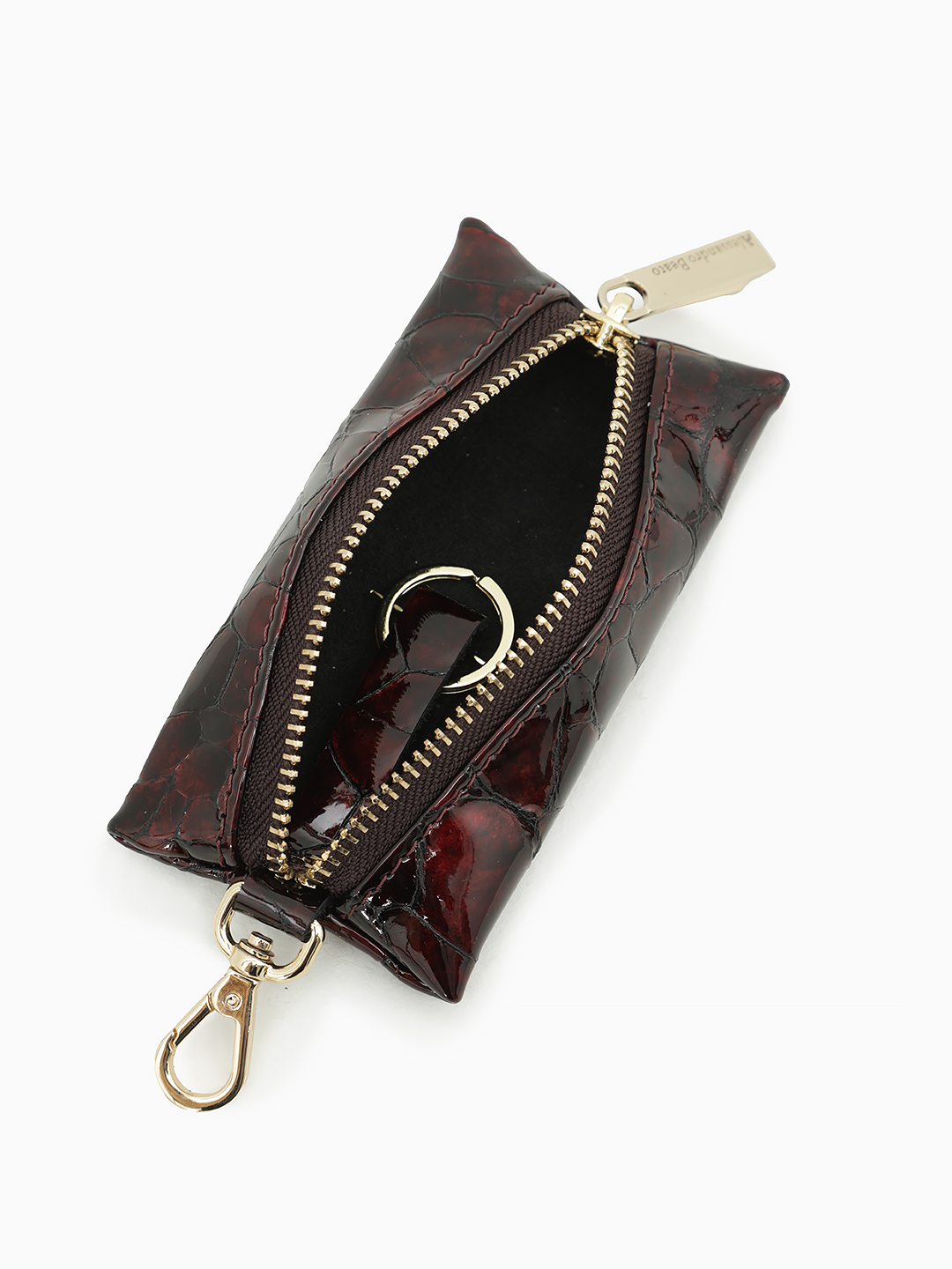 Ключница от бренда Alessandro Beato из натуральной лаковой кожи в винном цвете
