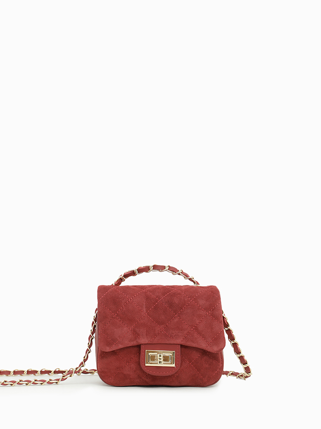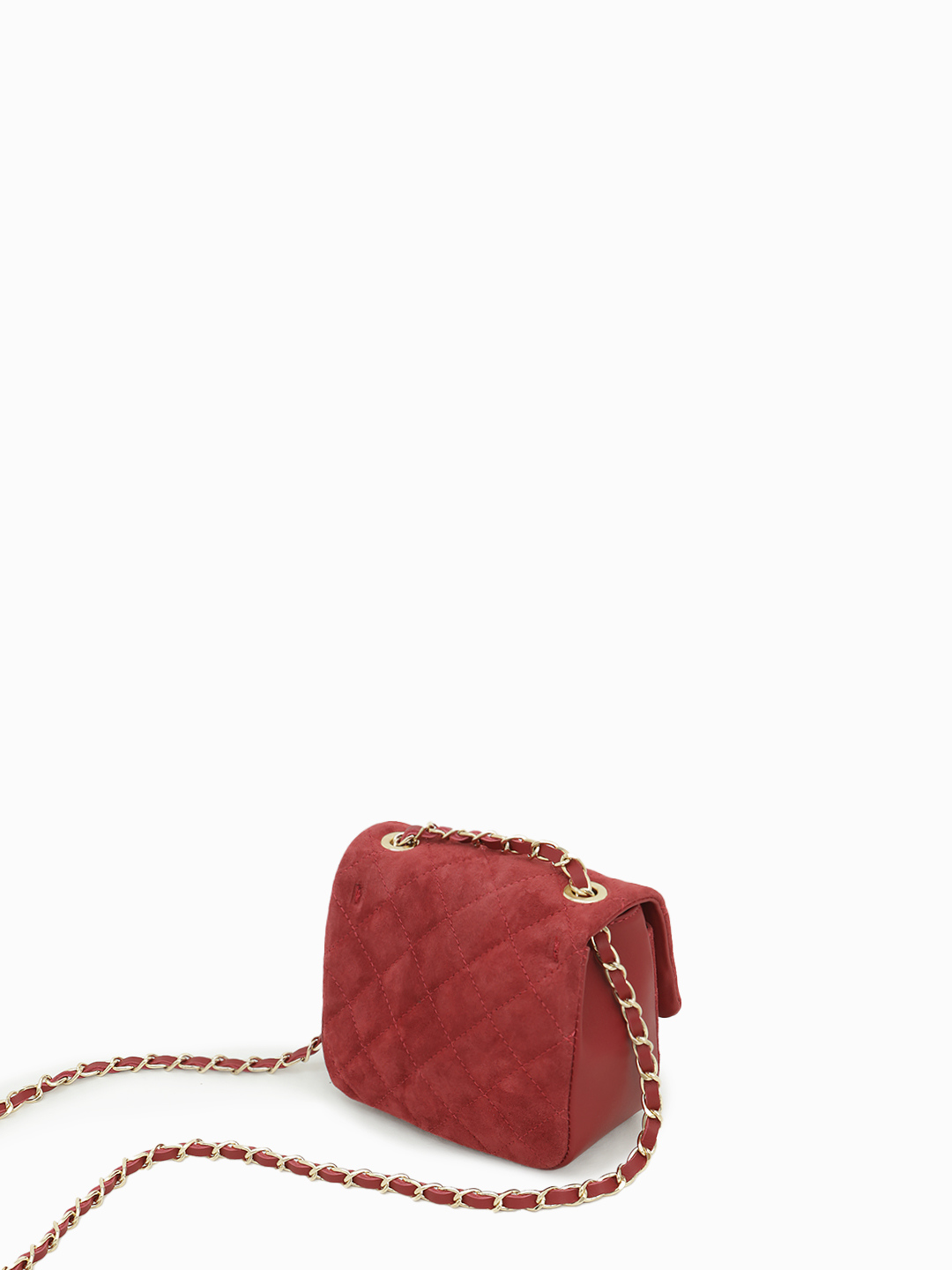 Небольшая кросс-боди с ремнём цепочкой от BE NICE из натуральной замши и кожи красного цвета