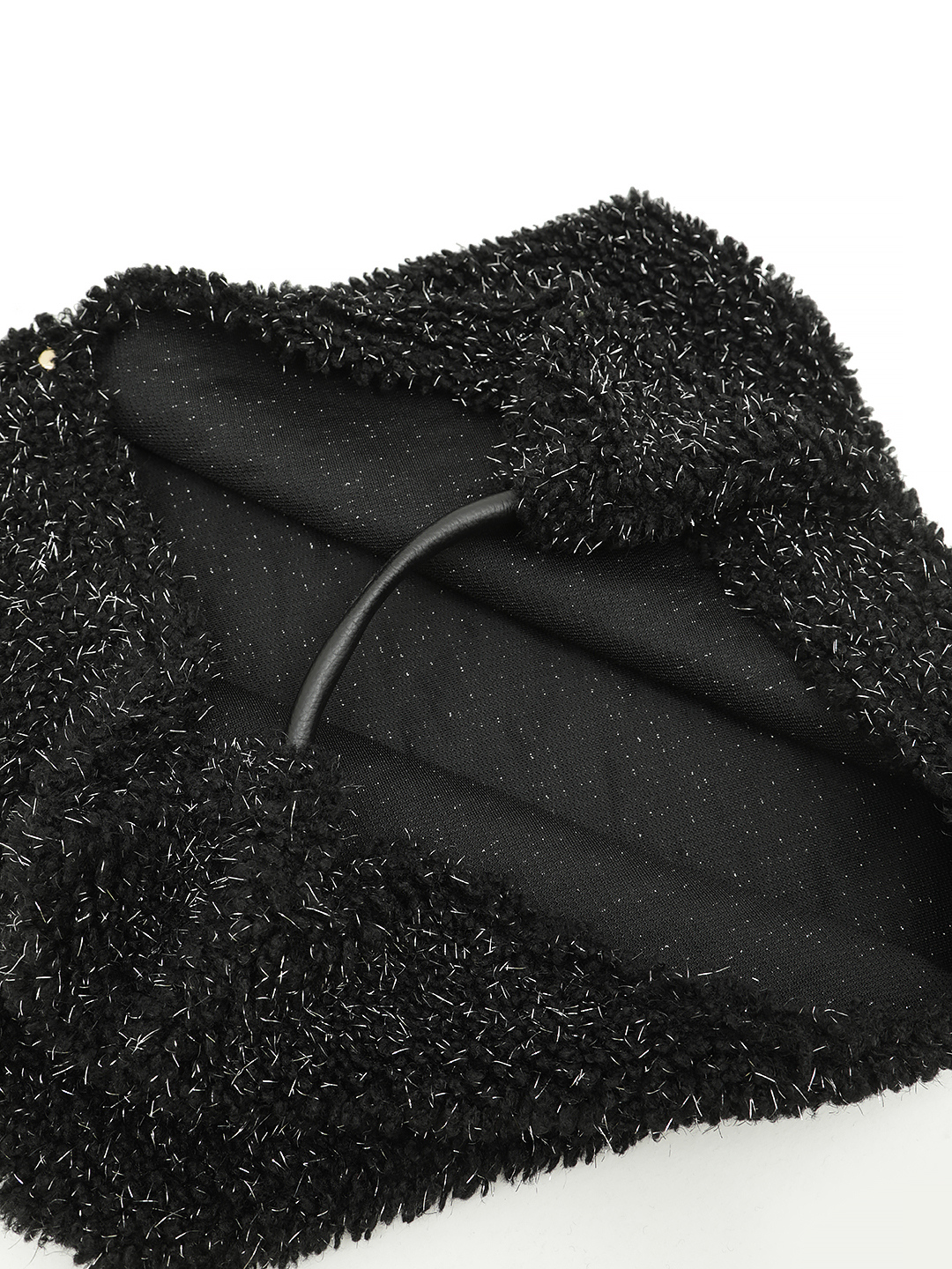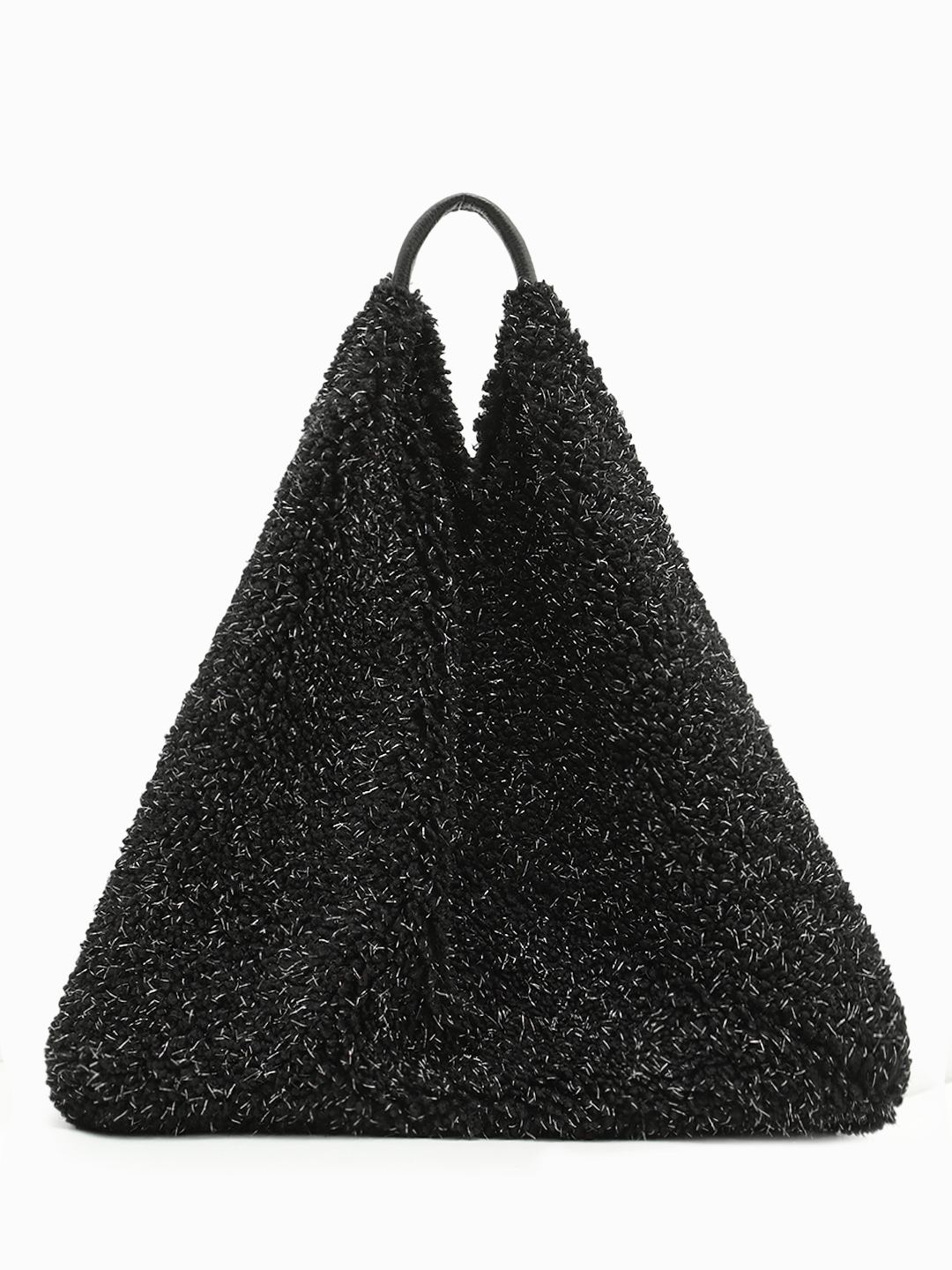 Мягкий шоппер из искусственного меха с серебристым люриксом в чёрном цвете
