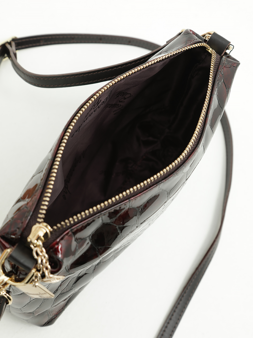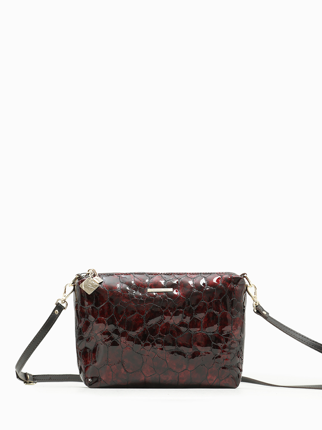 Кросс-боди на плечо Alessandro Beato в лаковой натуральной коже винного цвета