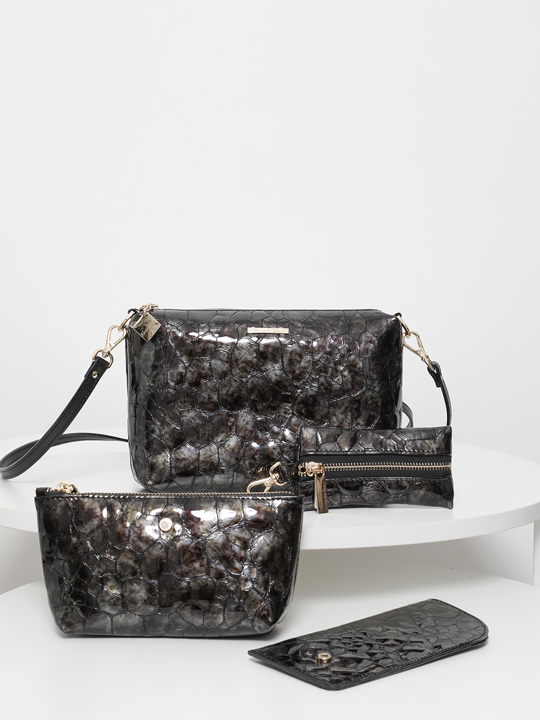 Кросс-боди на плечо Alessandro Beato в лаковой натуральной коже серого цвета