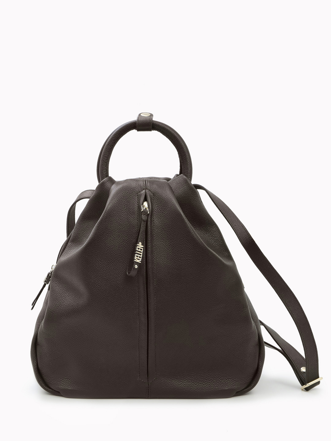 Сумка-рюкзак с круглой ручкой из натуральной кожи шоколадного цвета от KELLEN