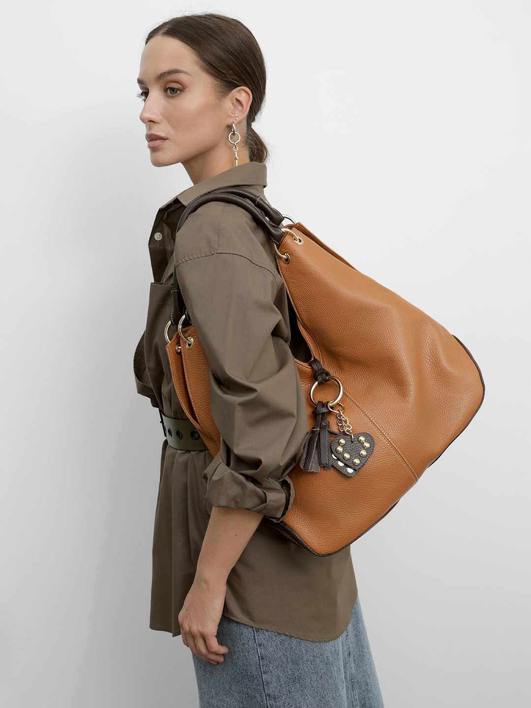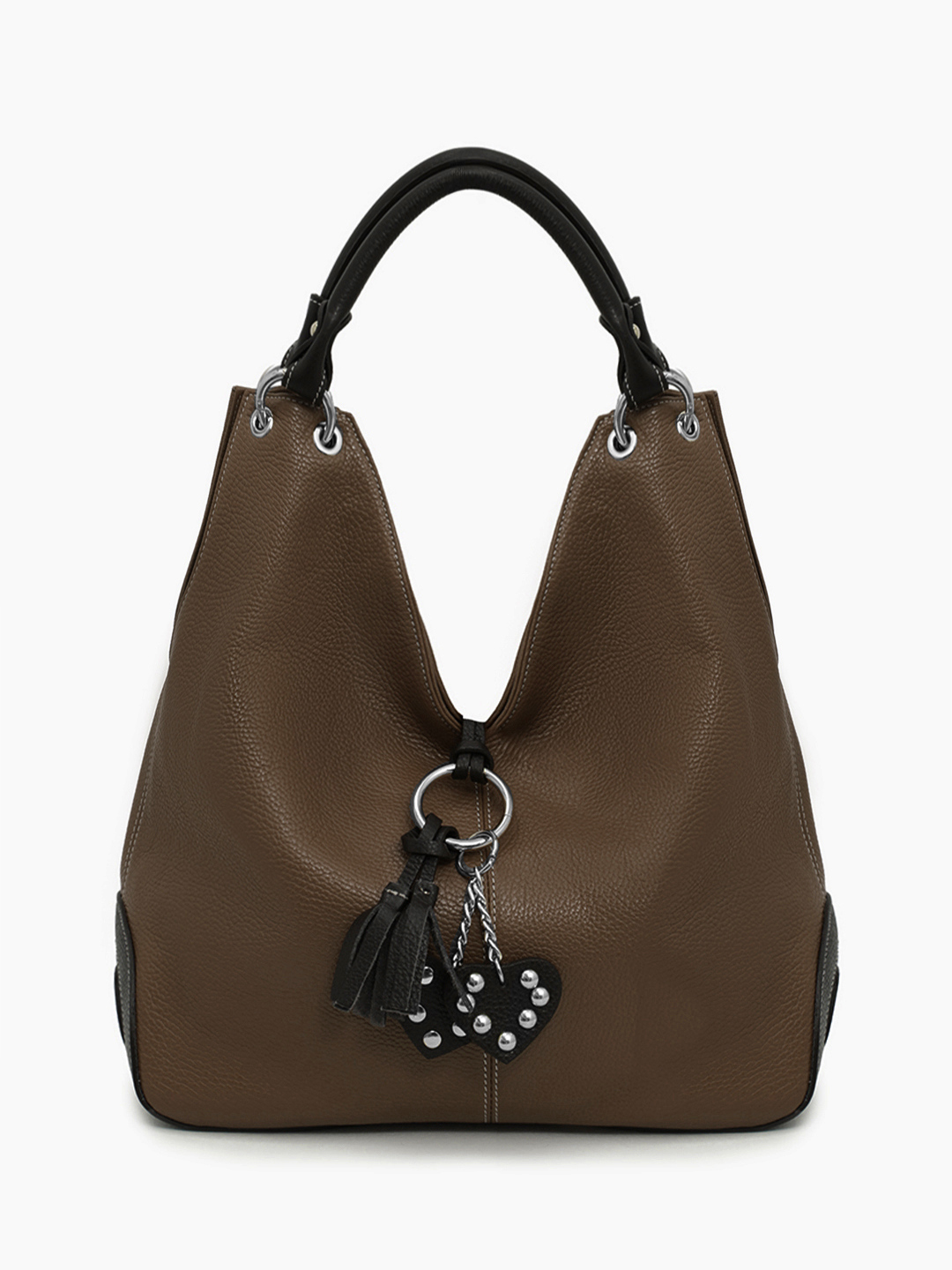 Коричневый шоппер с брелками в стиле бохо и шоколадной отделкой от FOLLE
