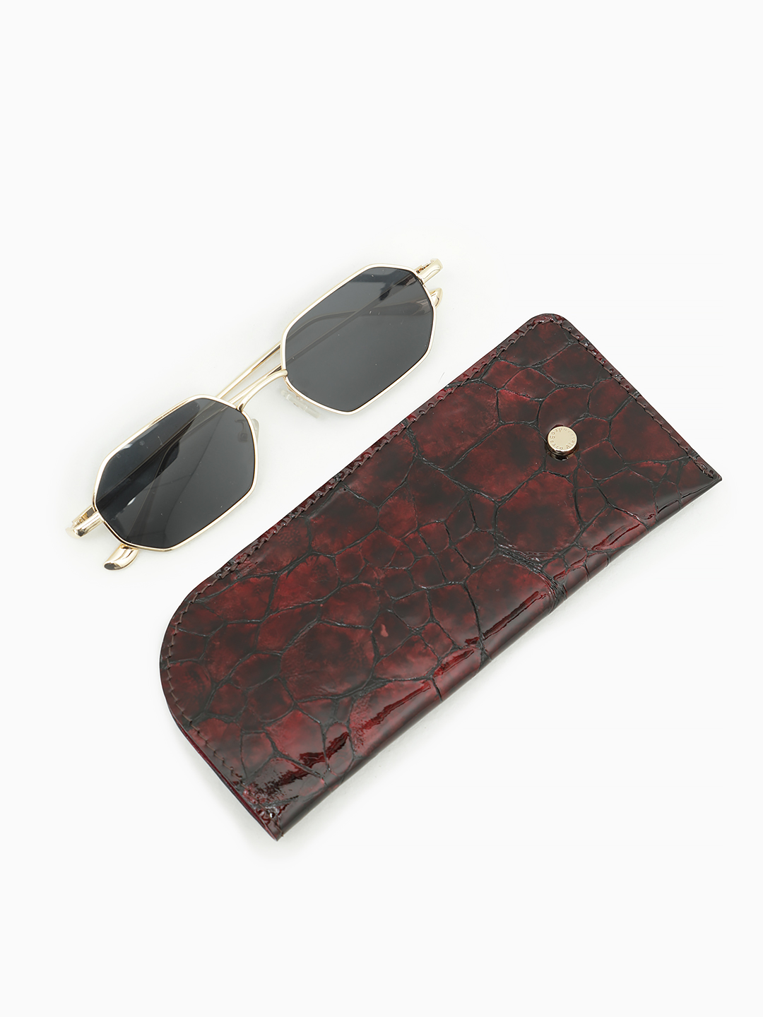 Очечник от бренда Alessandro Beato из натуральной лаковой кожи винного цвета