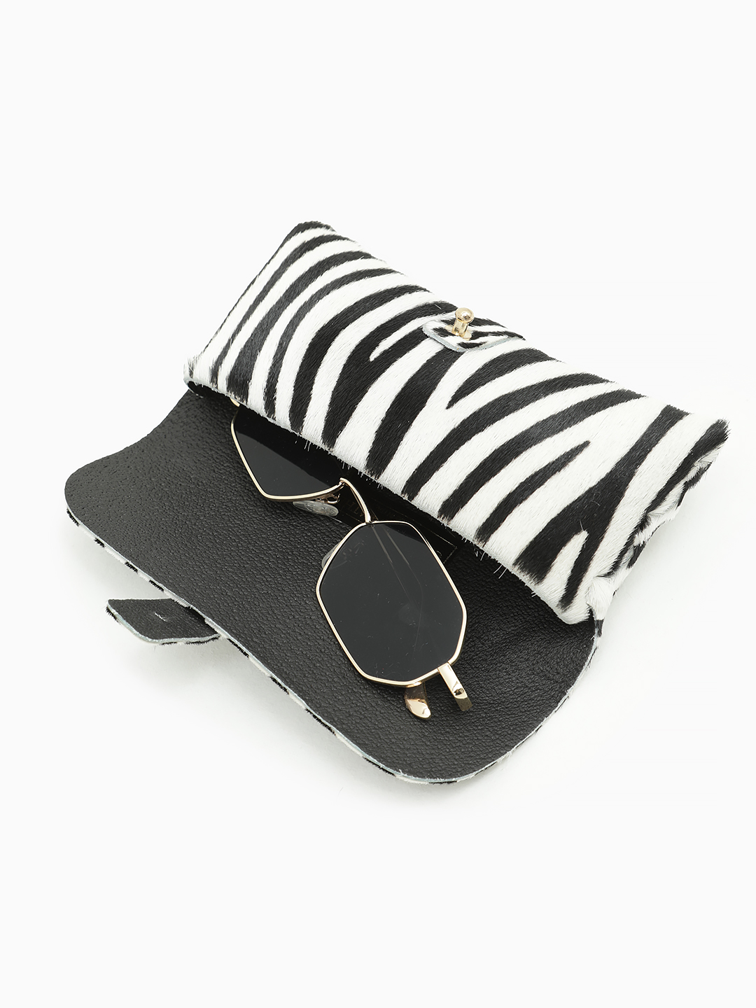 Очечник из натурального меха от FOLLE с анималистичным принтом зебра