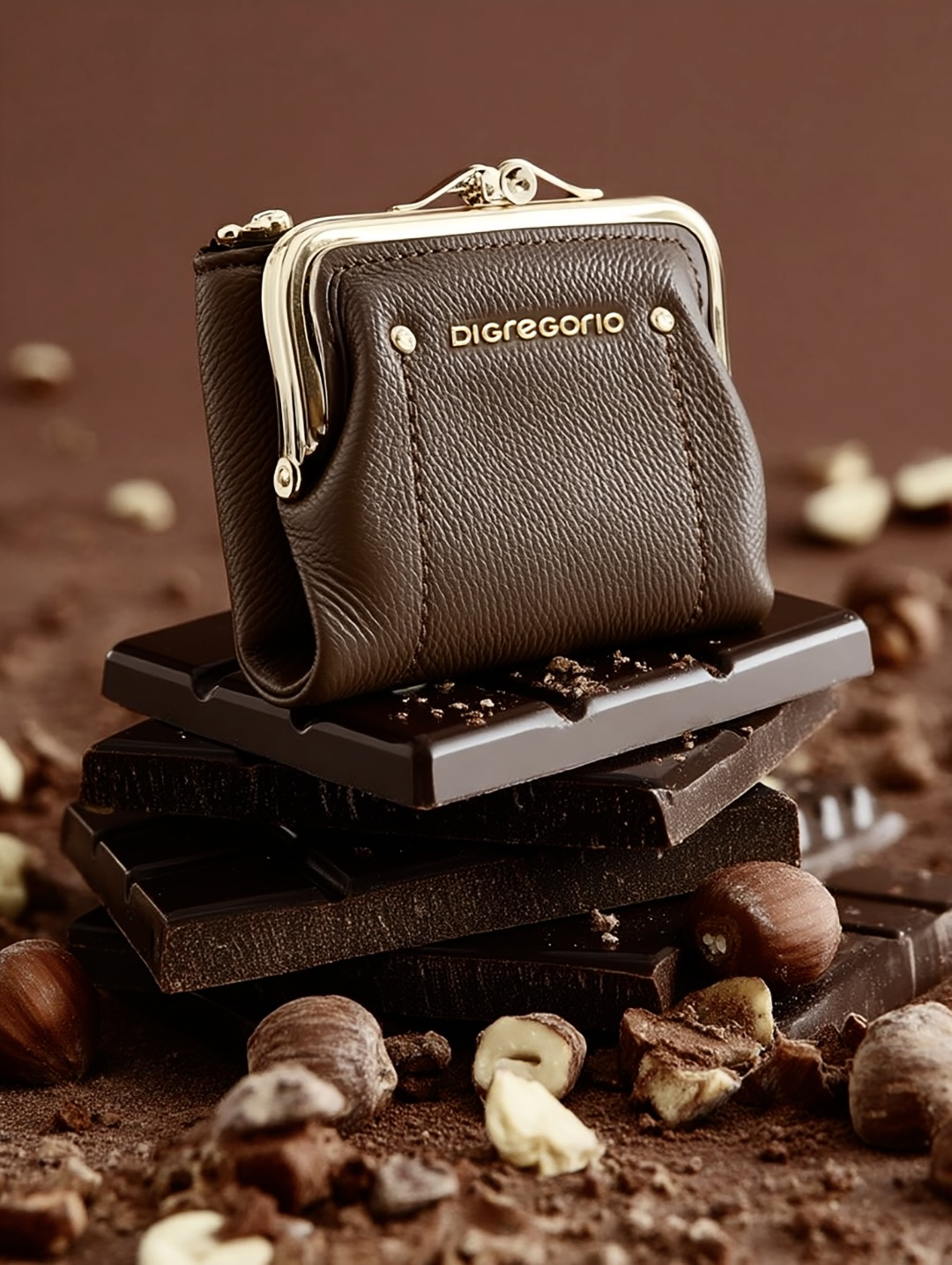 Небольшой кошелёк в коже коричневого цвета от бренда Di Gregorio