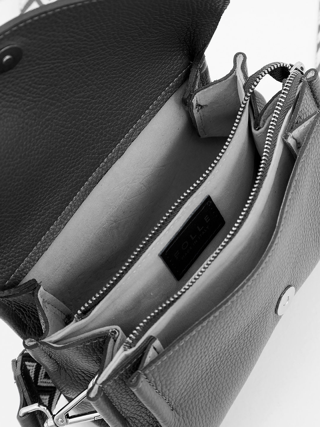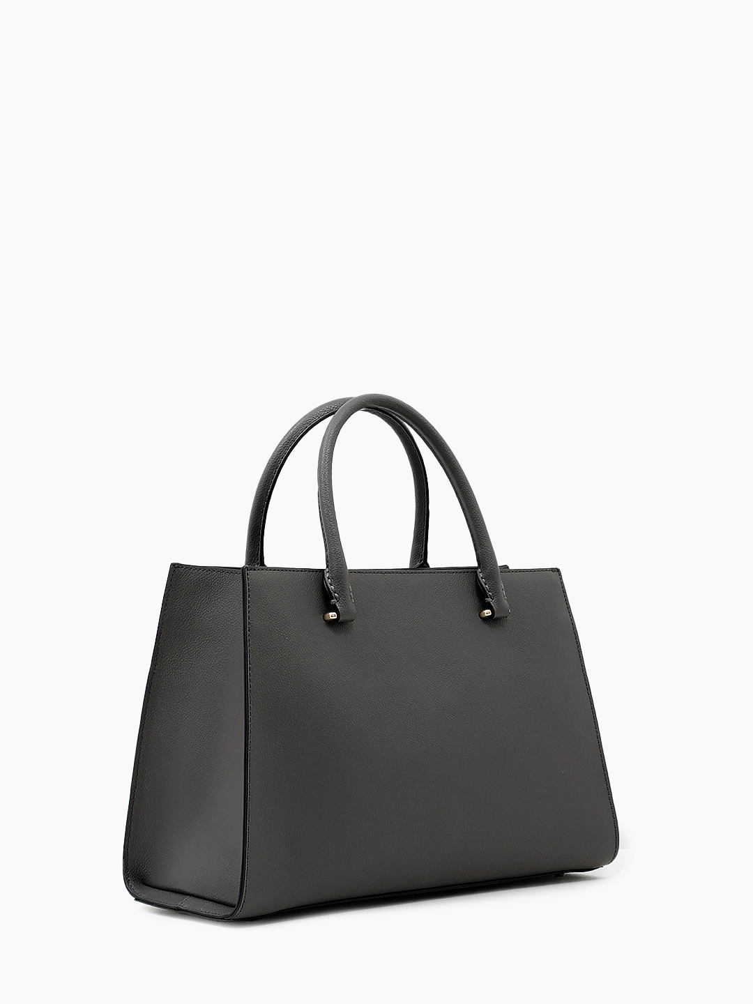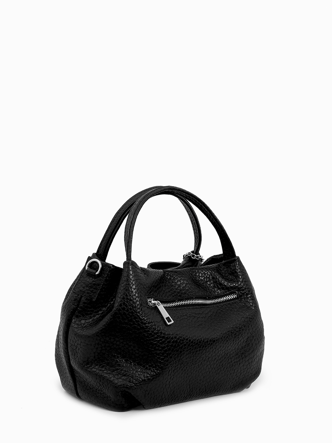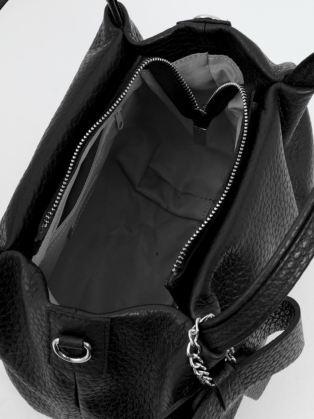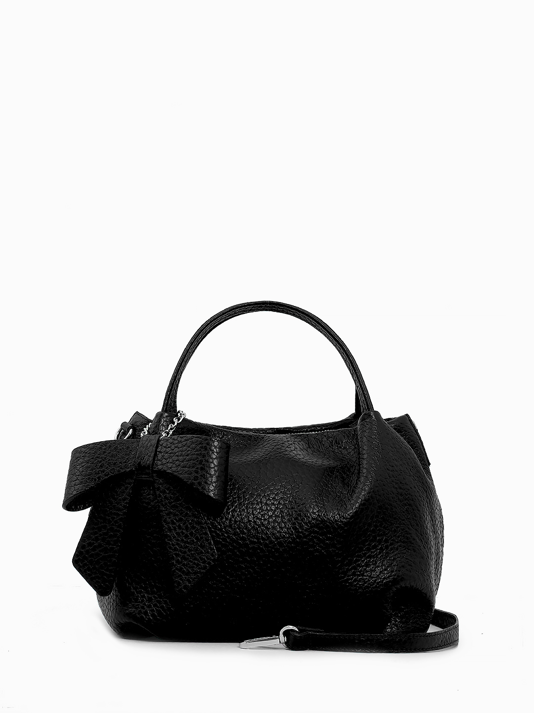Тоут с брелком-бантом из крупнозернистой кожи от FOLLE в чёрном цвете