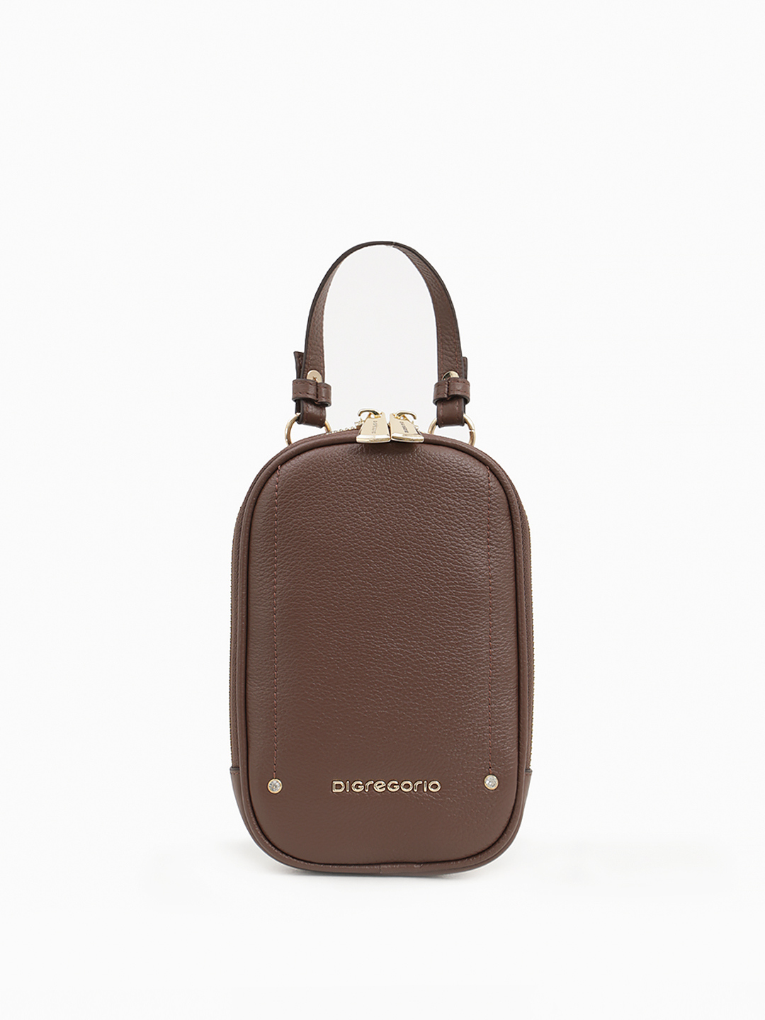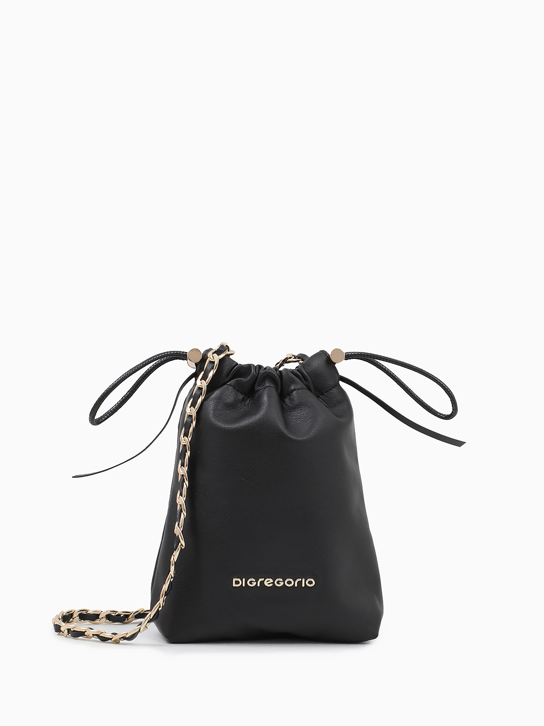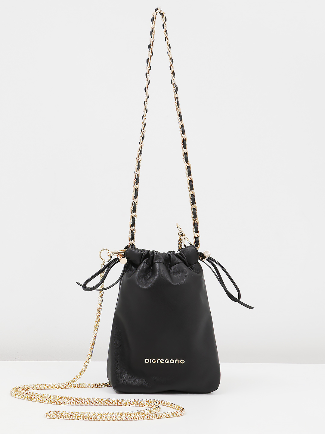Мини сумка-кисет для телефона с двумя ремешками от Di Gregorio в чёрном цвете