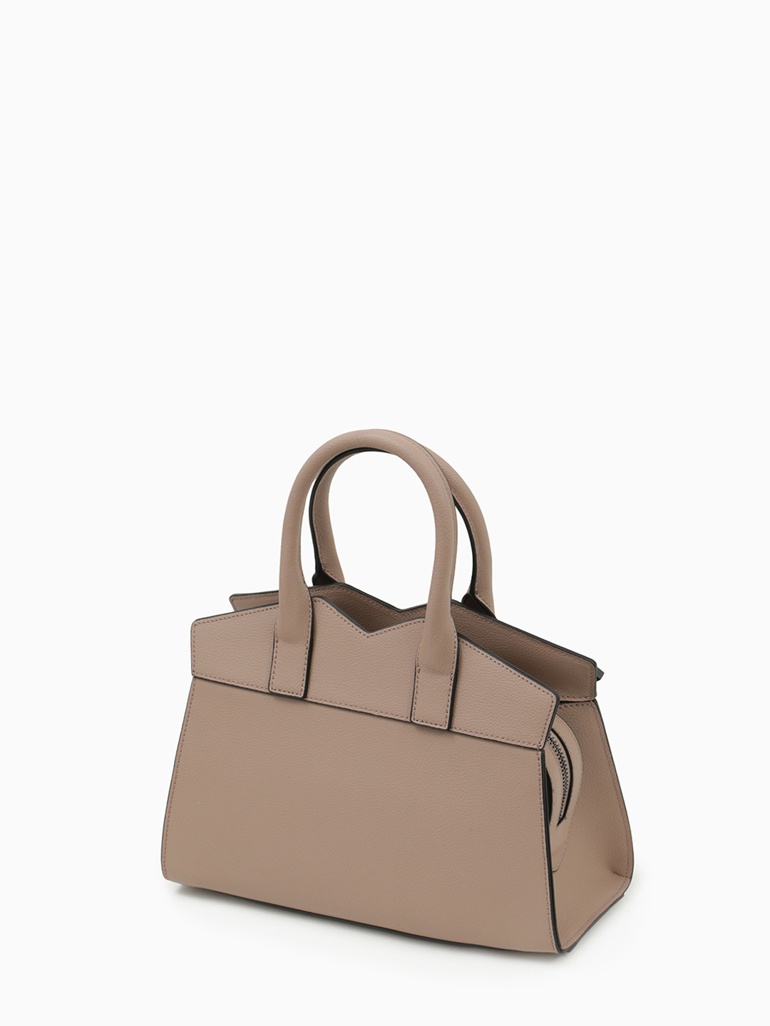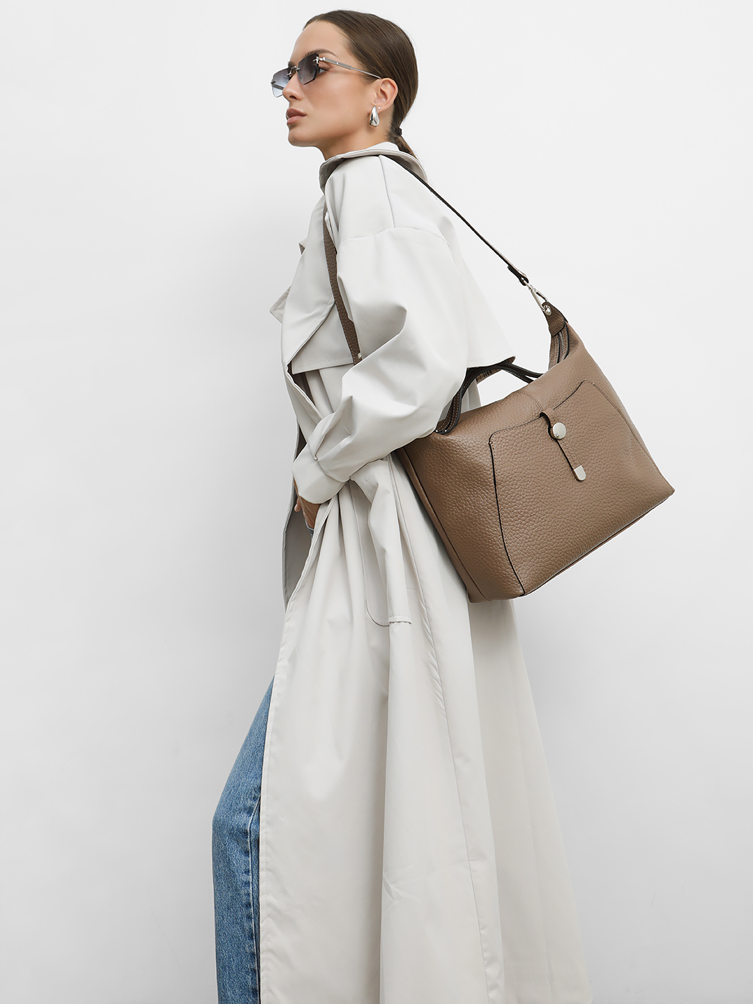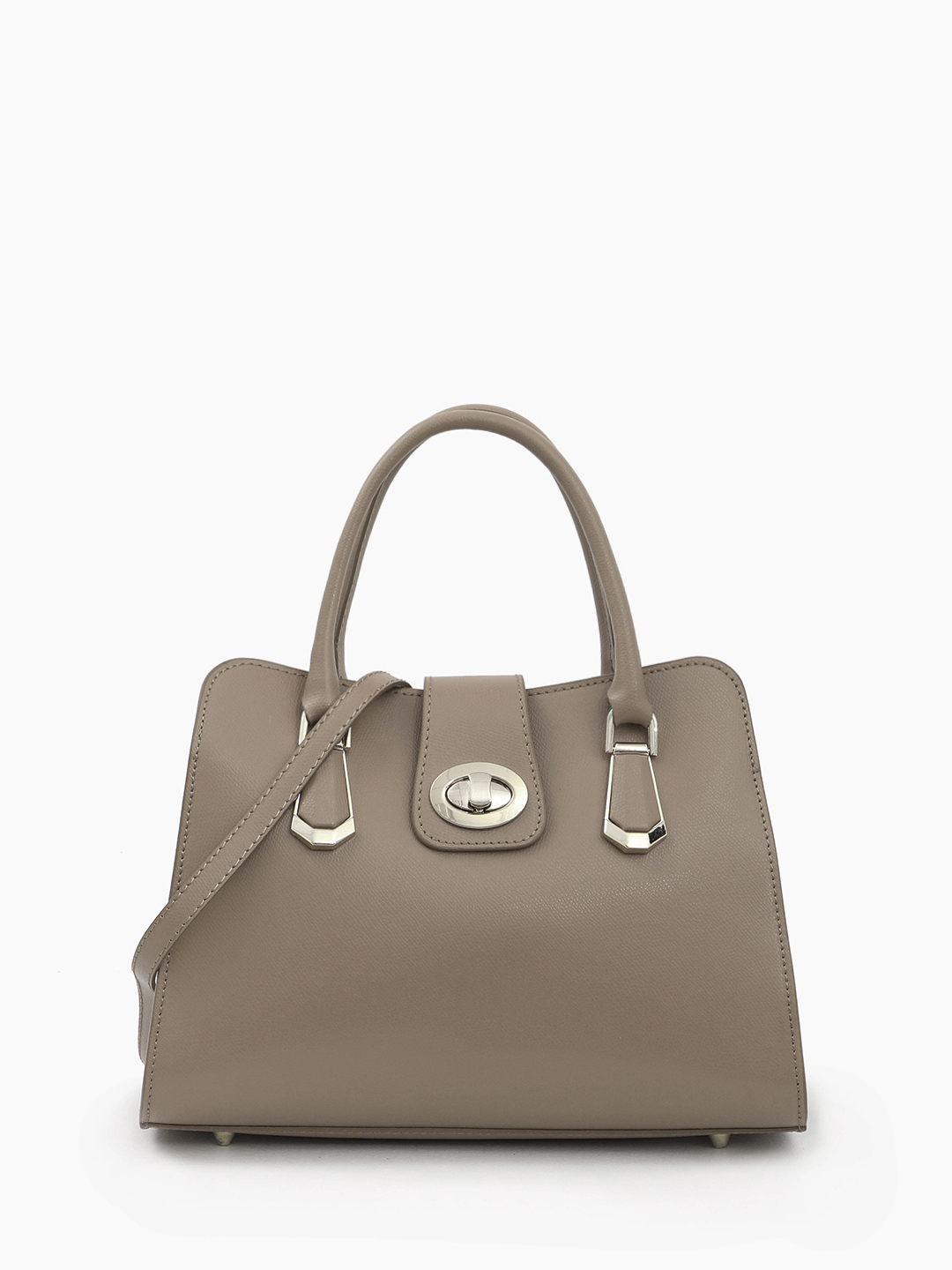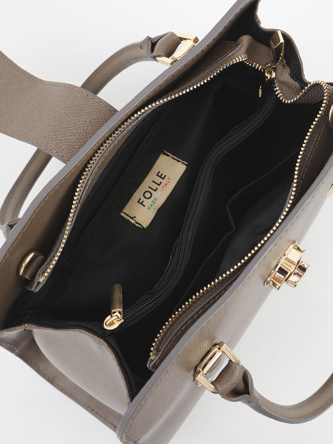 Сумка-тоут с поворотной золотистой фурнитурой от FOLLE в цвете тауп