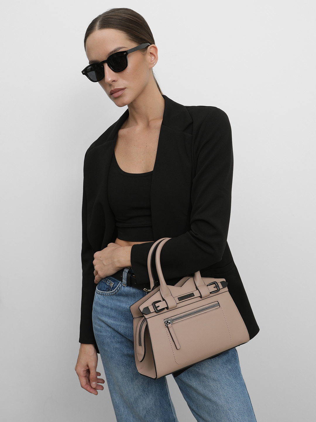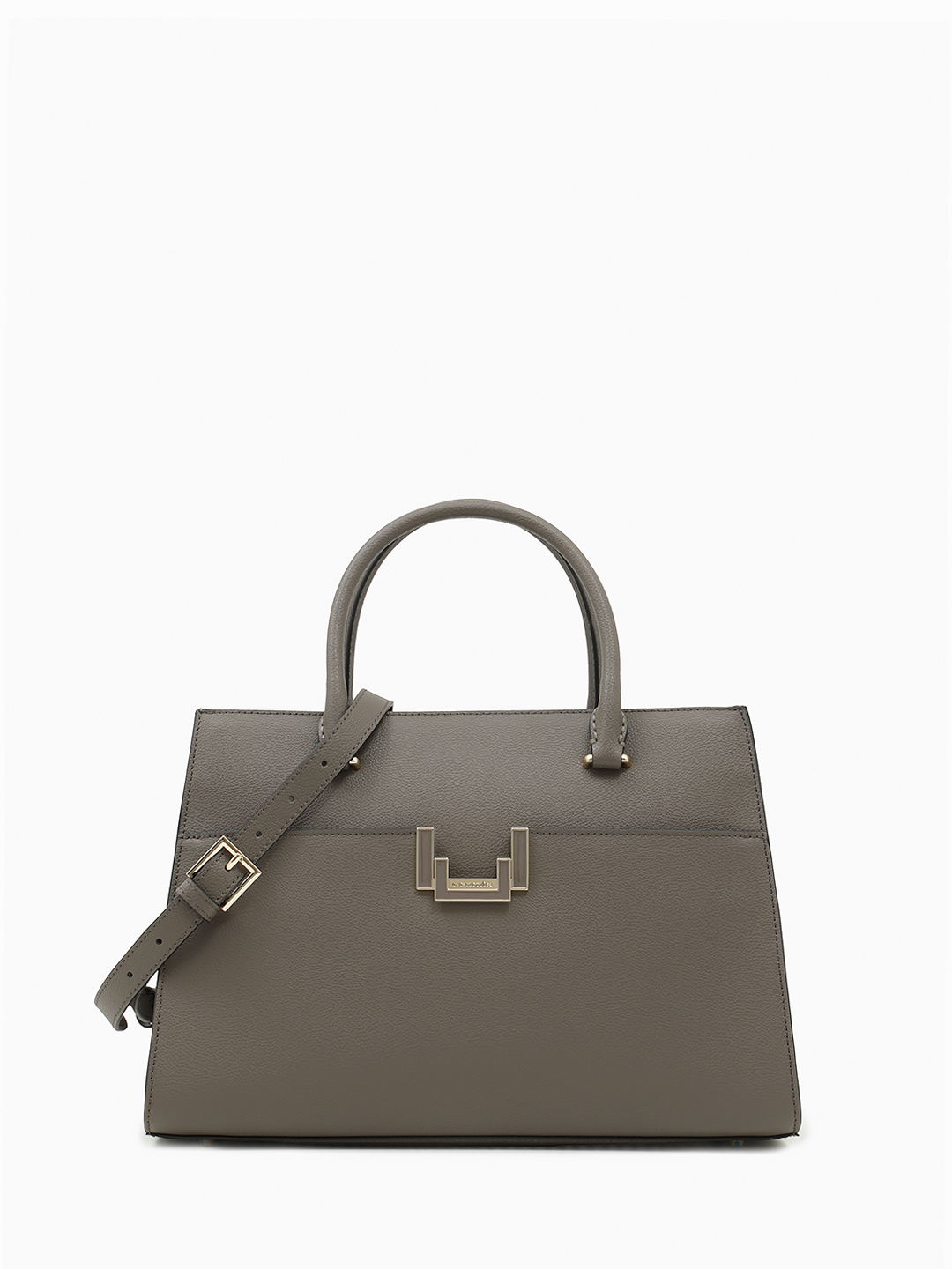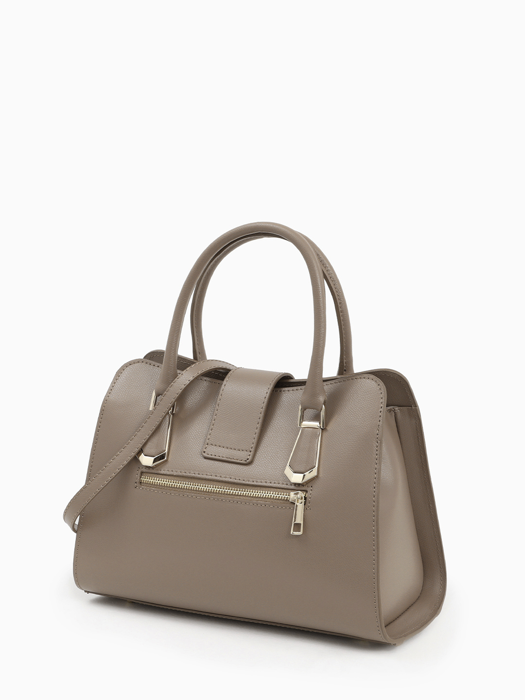 Сумка-тоут с поворотной золотистой фурнитурой от FOLLE в цвете тауп
