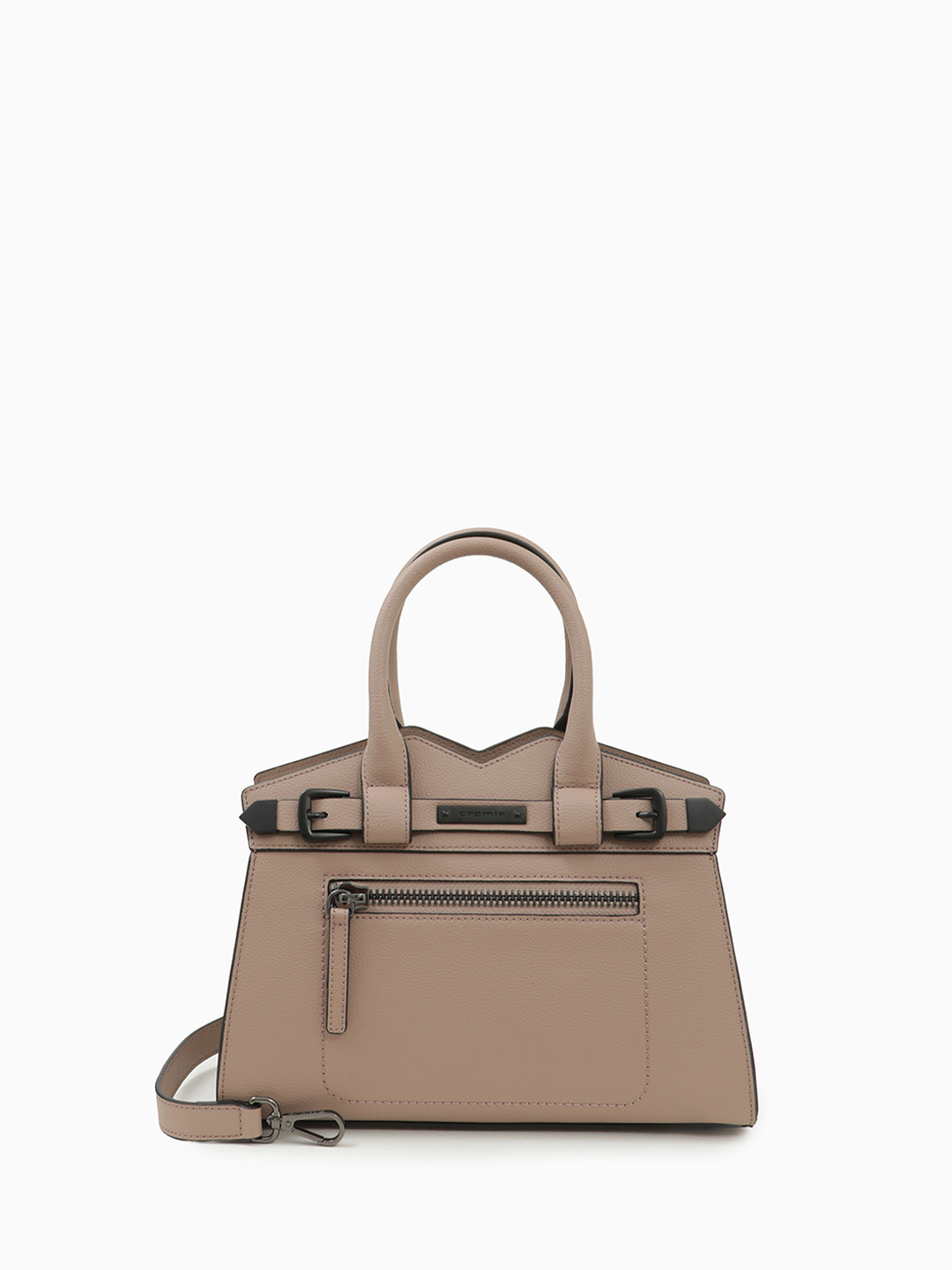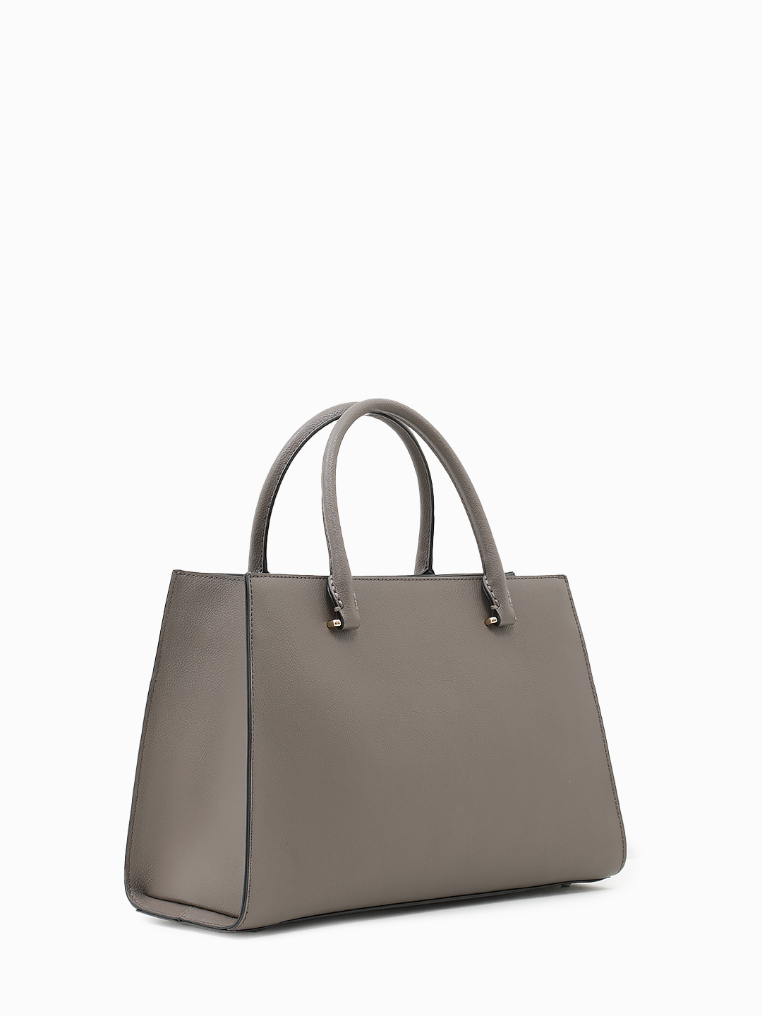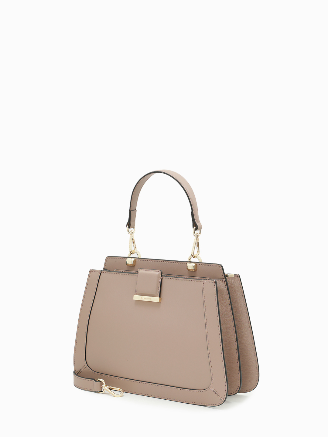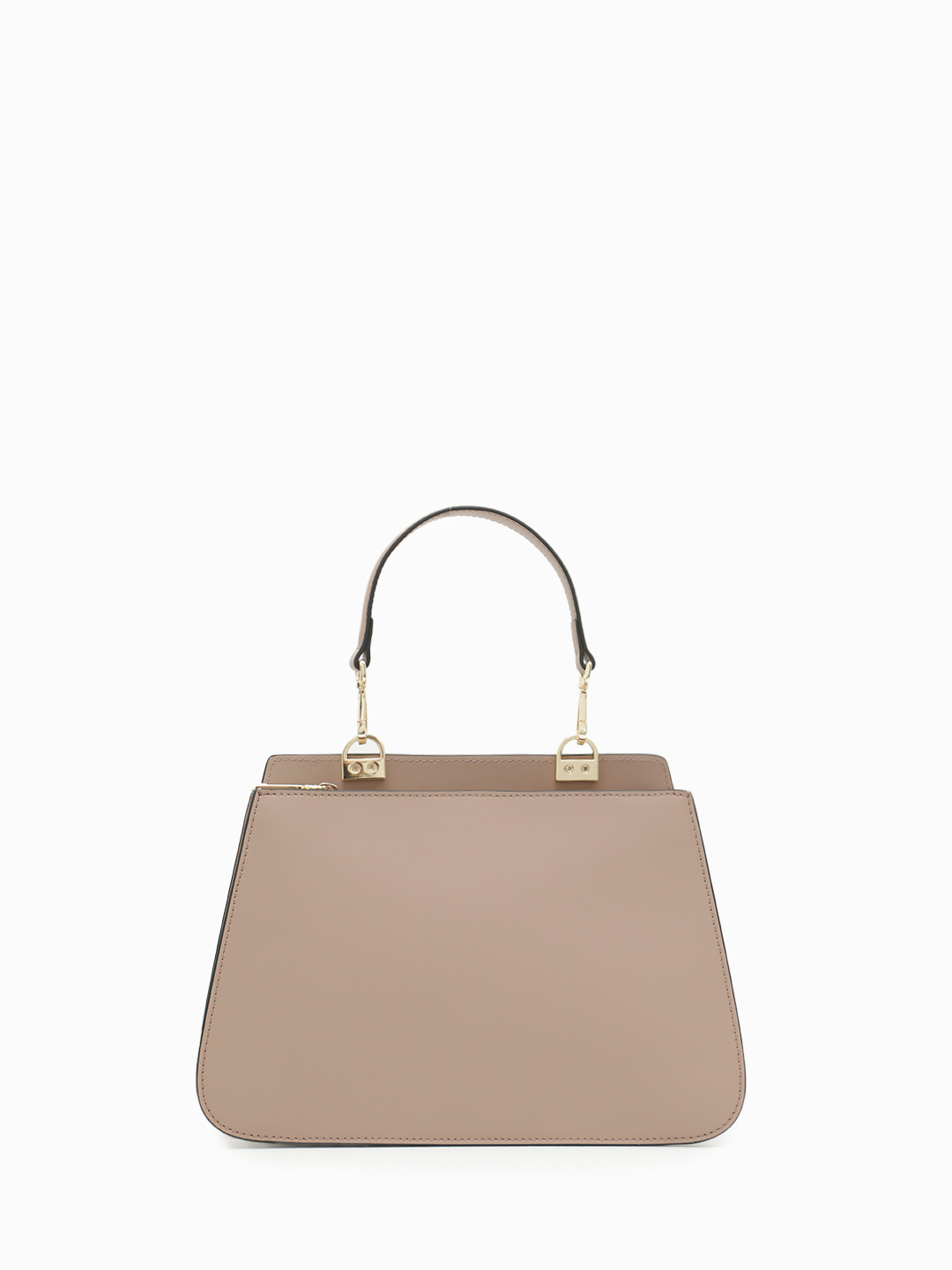 Сумка-тоут с поворотной золотистой фурнитурой от FOLLE в цвете тауп