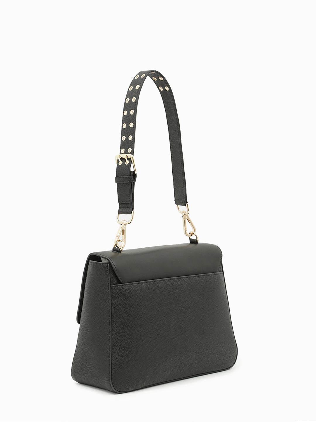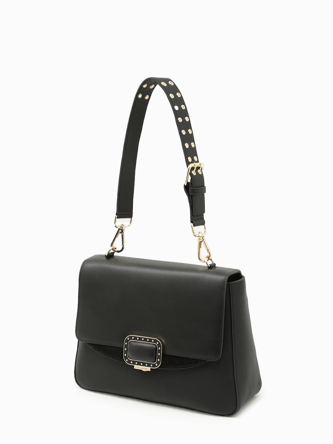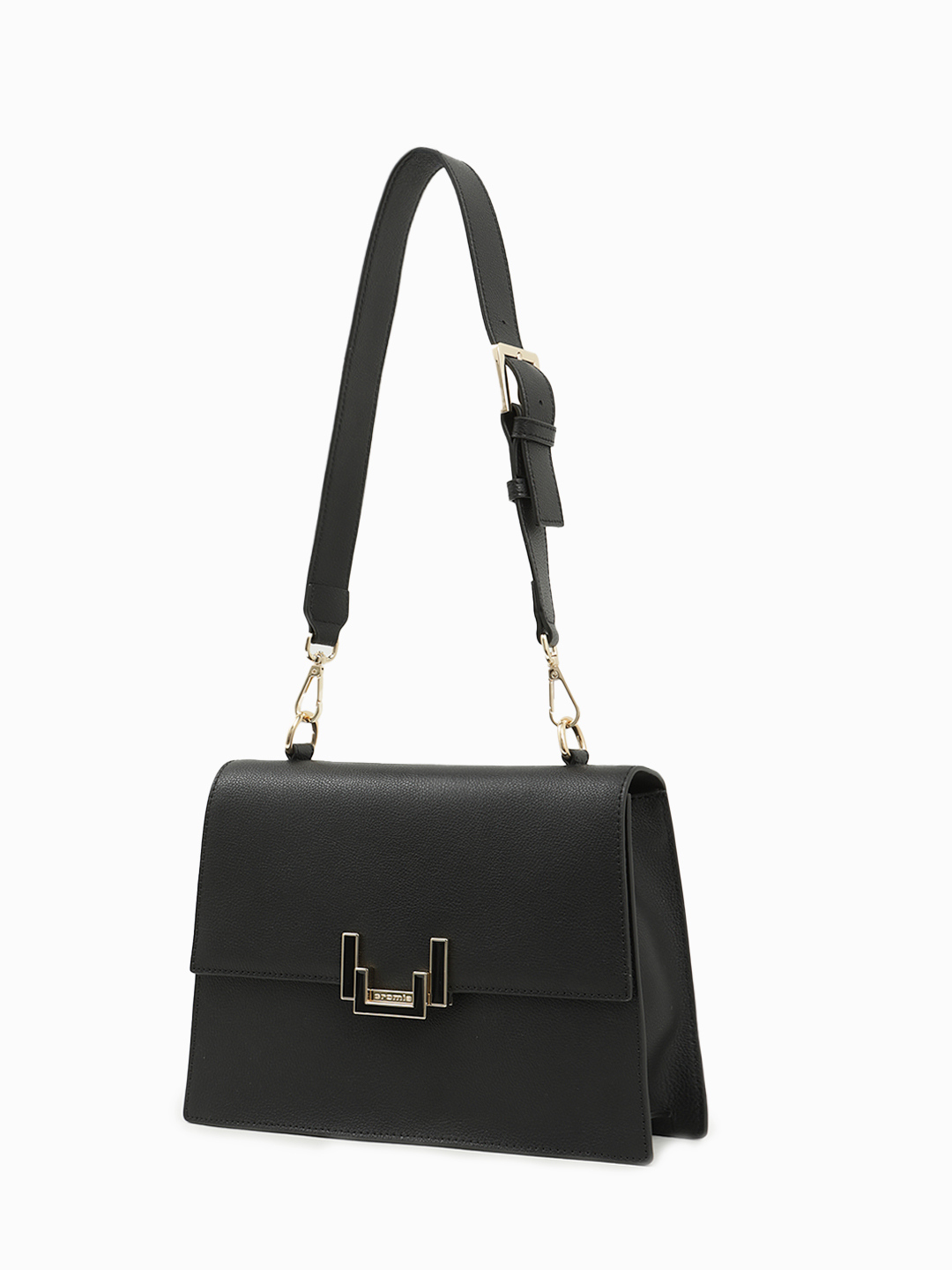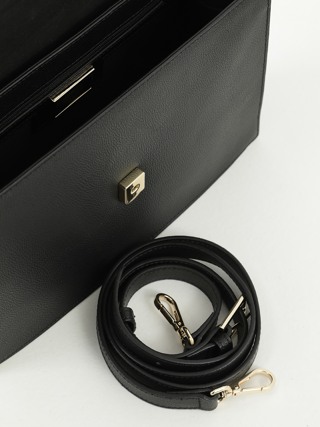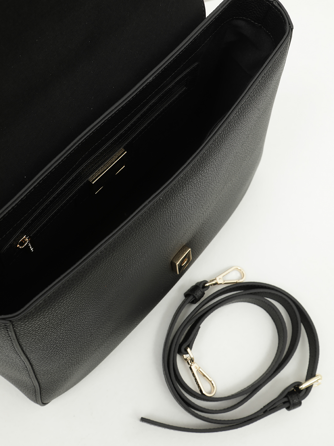 Классическая сумка с клапаном из натуральной кожи чёрного цвета от CROMIA