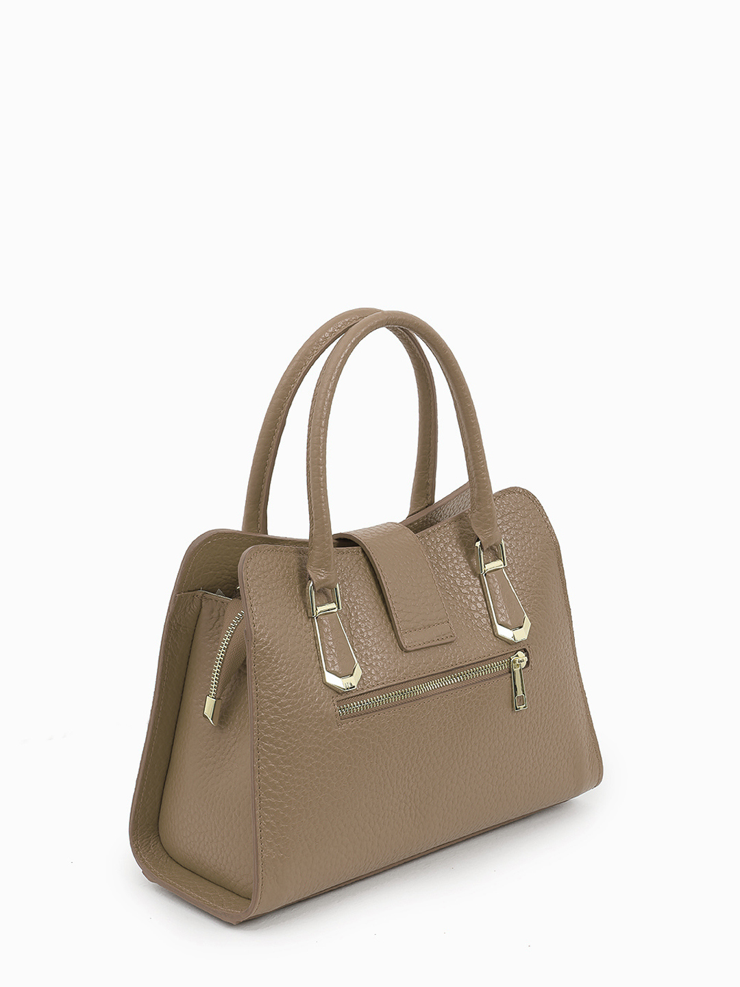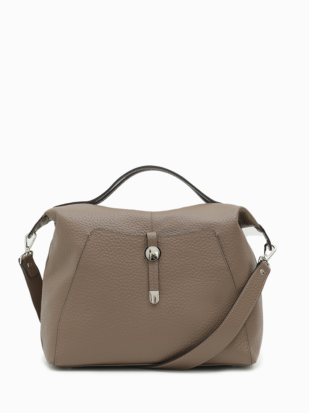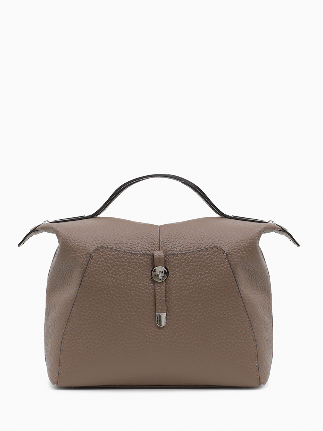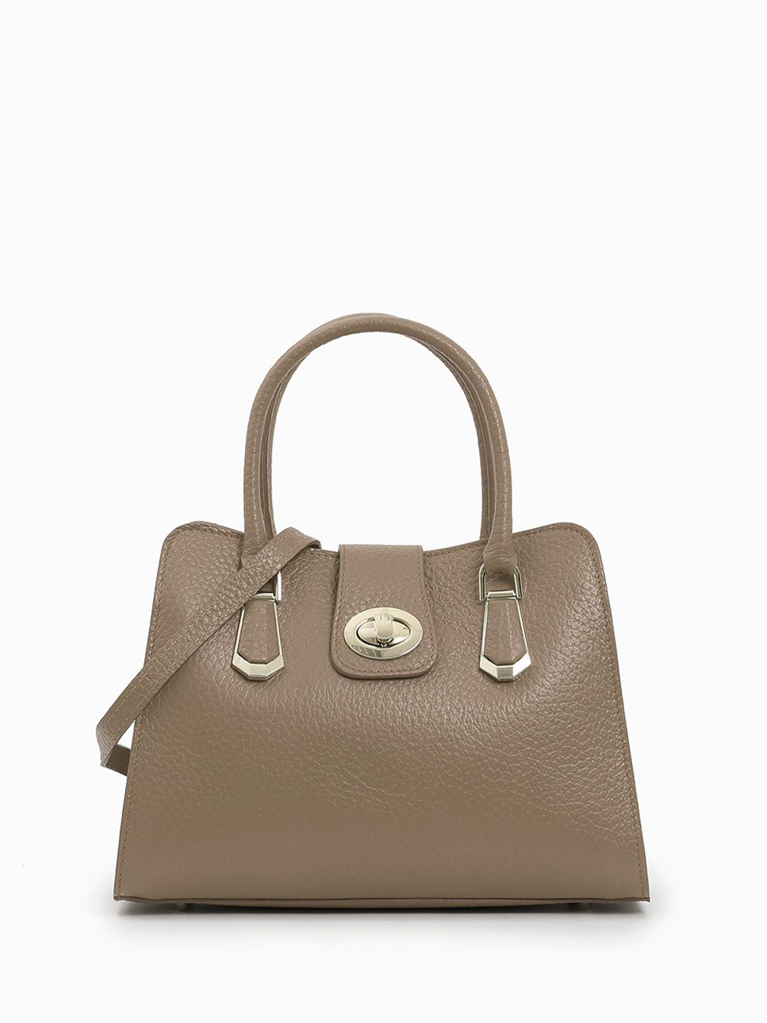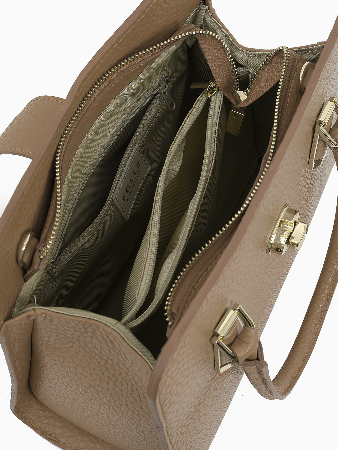 Сумка-тоут с поворотной золотистой фурнитурой в крупнозернистой коже от FOLLE в цвете тауп