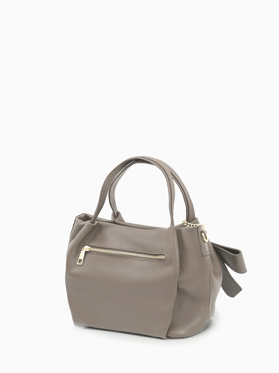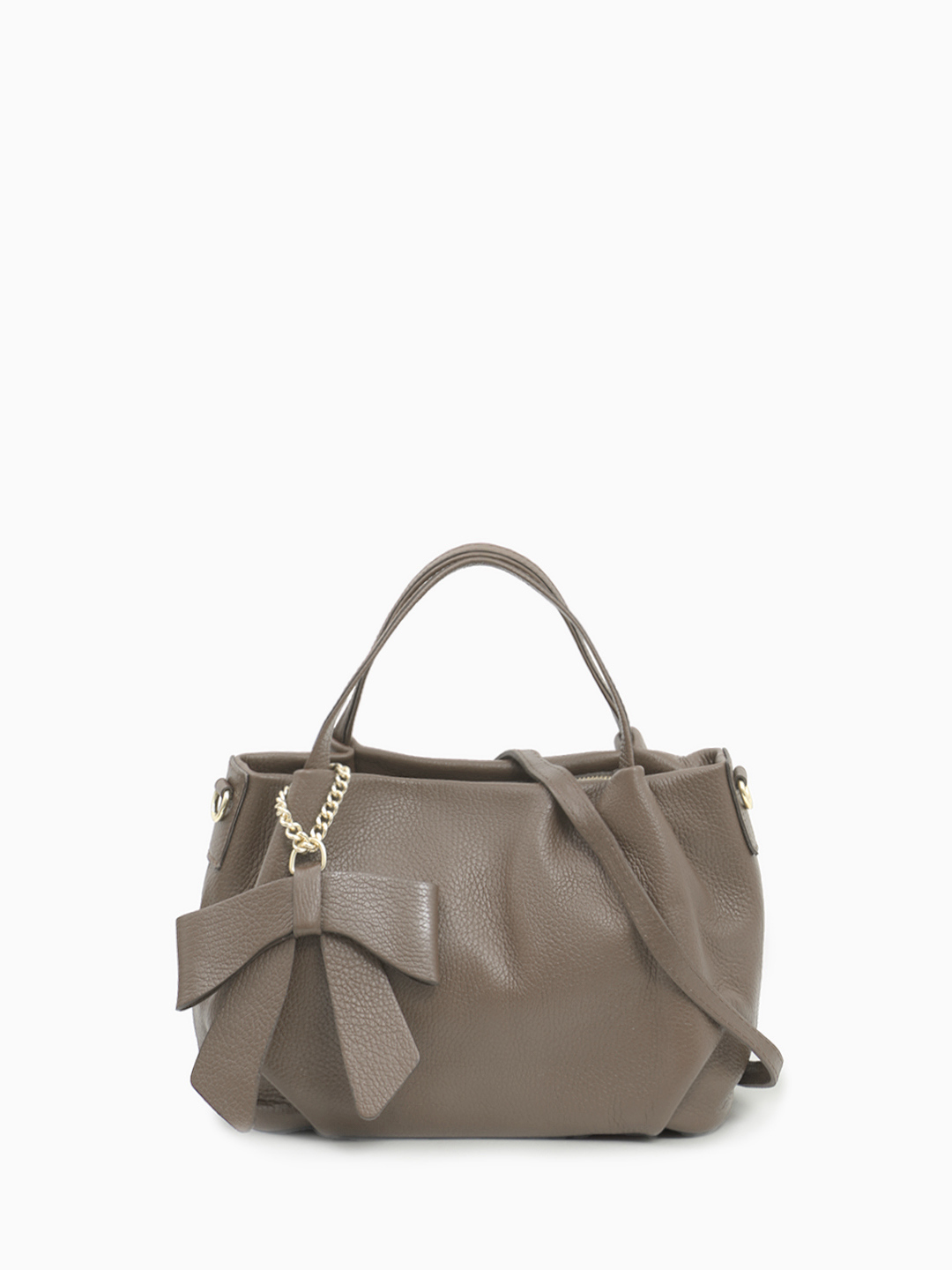 Тоут с брелком-бантом из натуральной кожи от FOLLE в цвете тауп