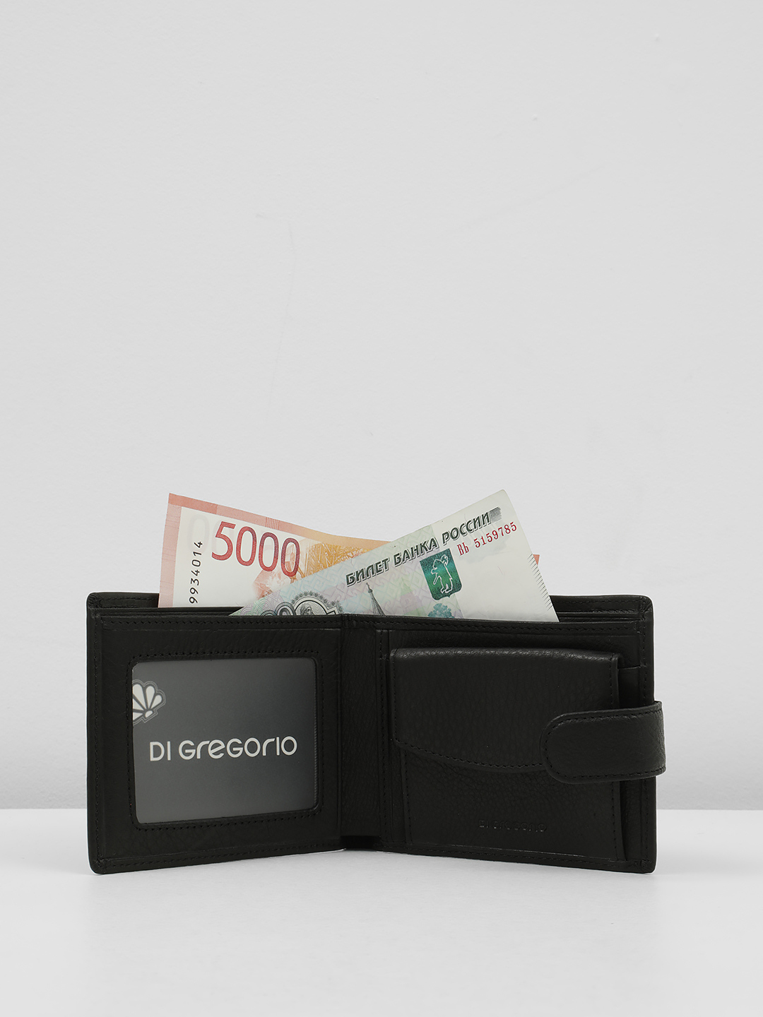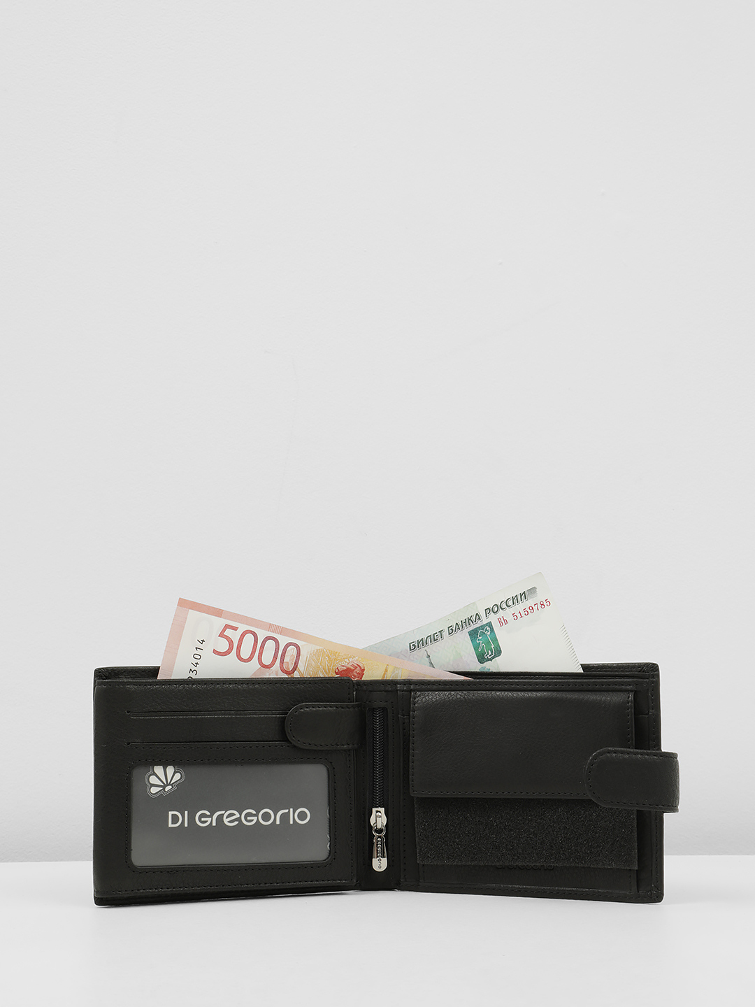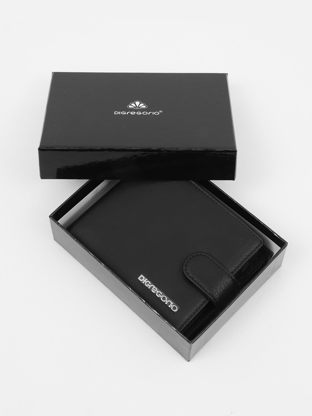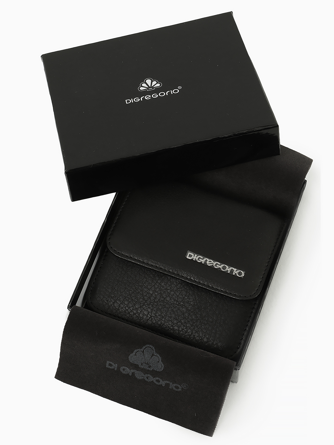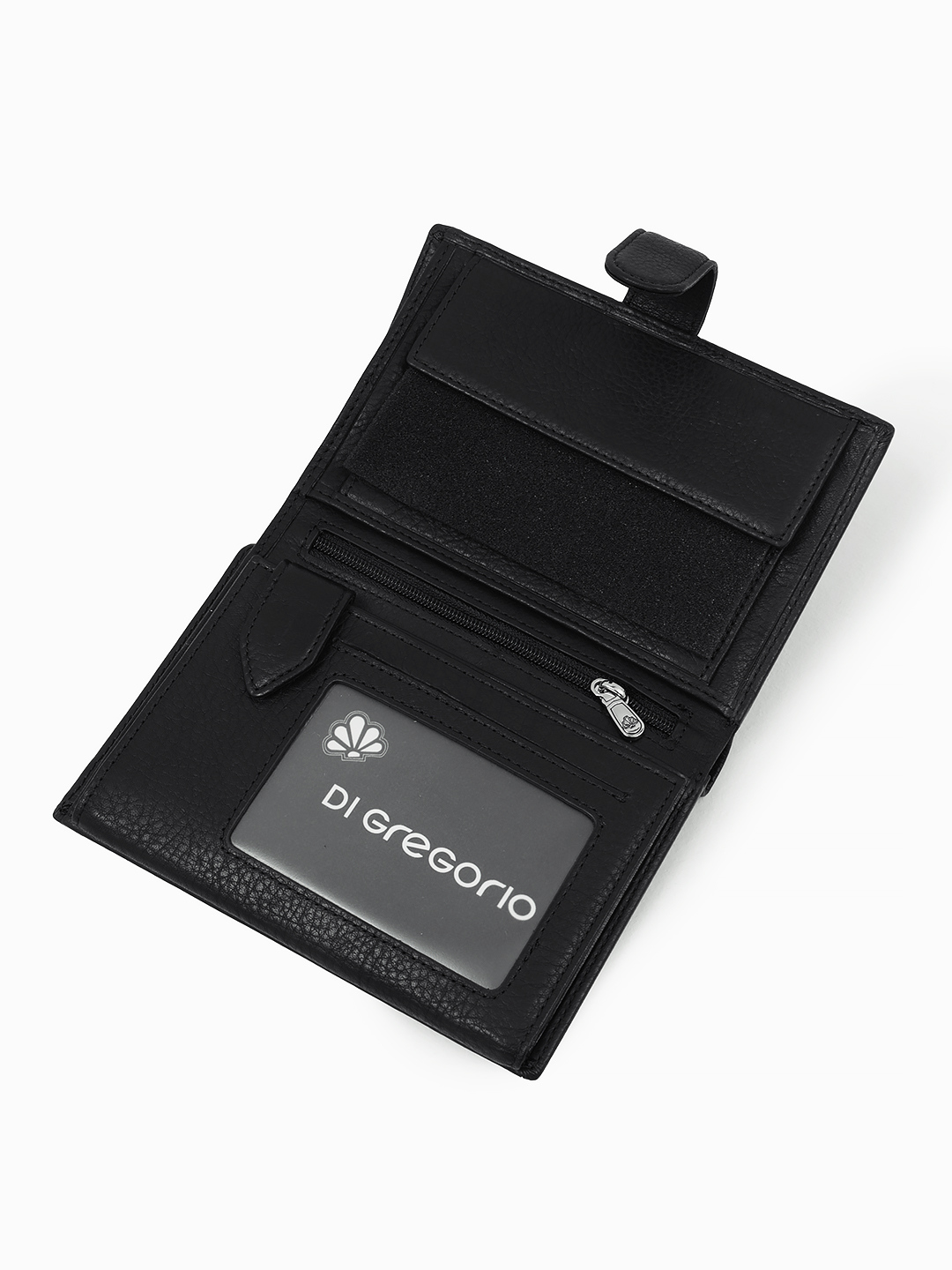 Кошелёк-портмоне на кнопке от бренда Di Gregorio в чёрном цвете