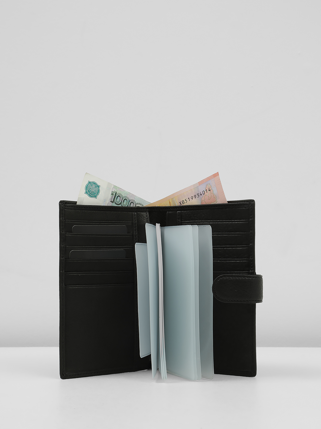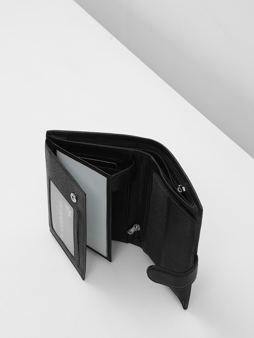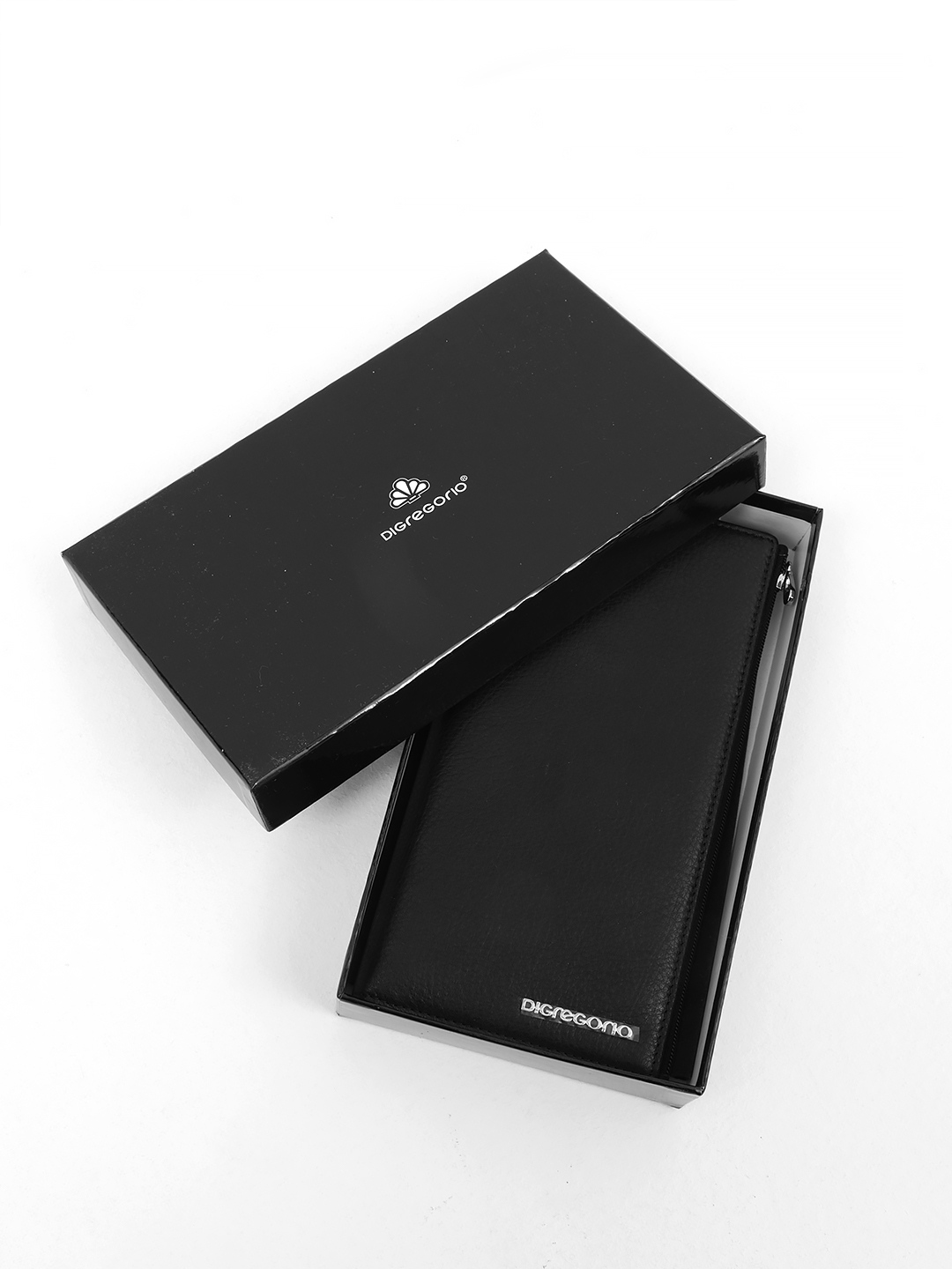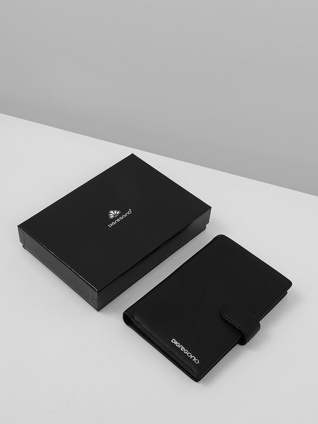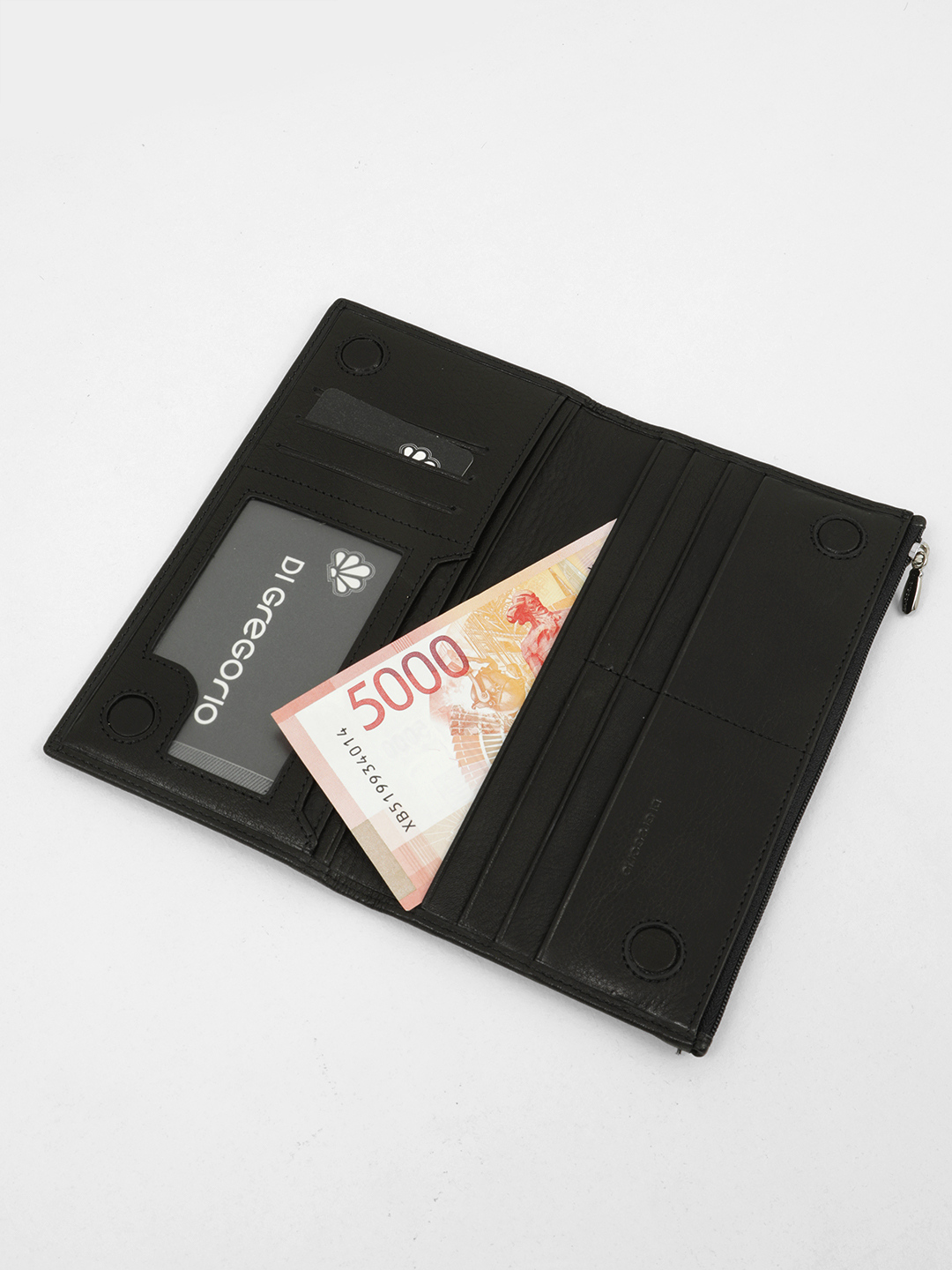 Кошелёк-портмоне на кнопке от бренда Di Gregorio в чёрном цвете