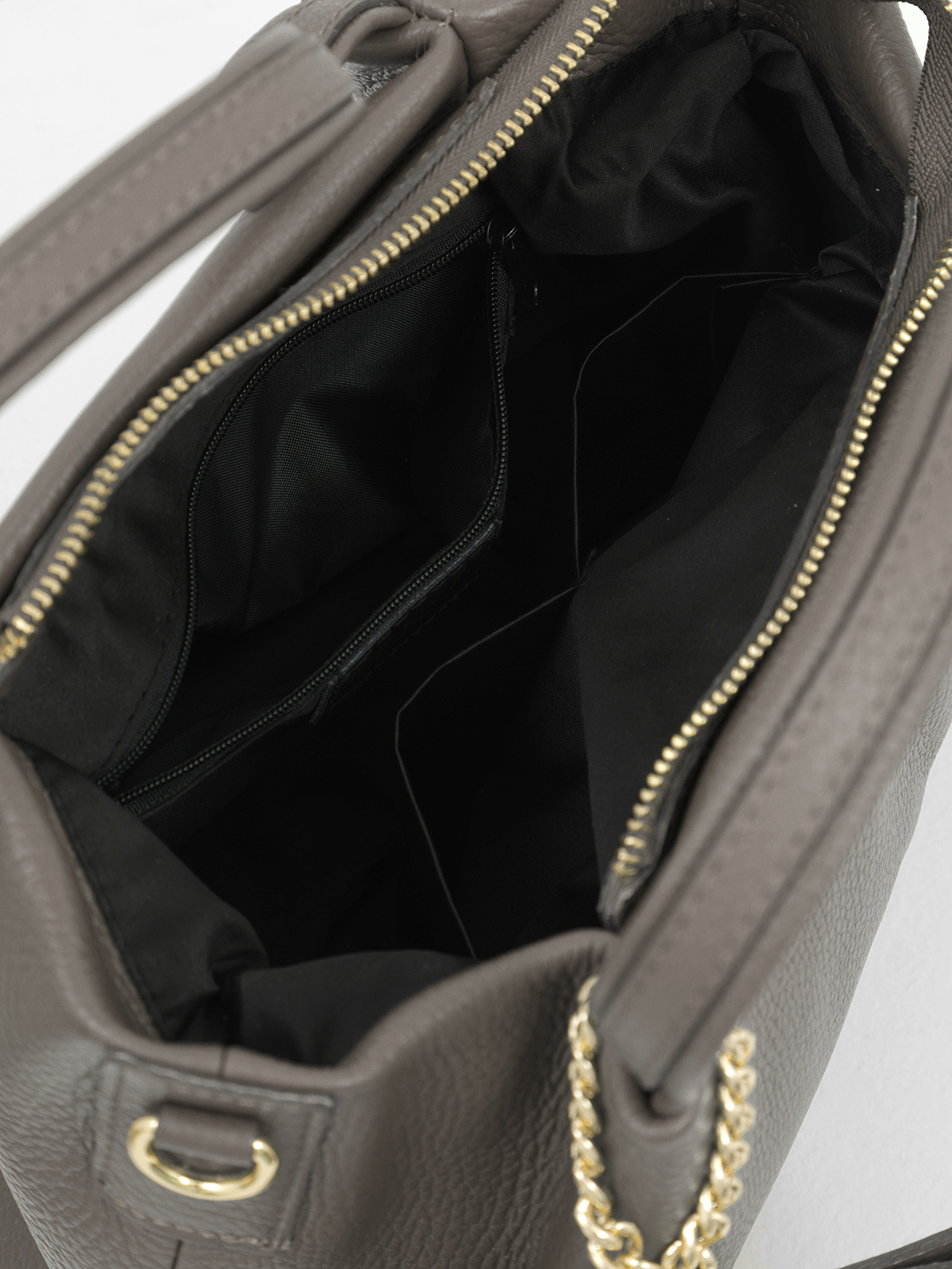 Тоут из натуральной кожи цвета тауп с брендированной фурнитурой от CROMIA