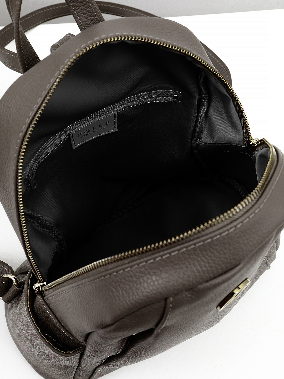 Рюкзак с двумя потайными и боковыми карманами от FOLLE в цвете тауп
