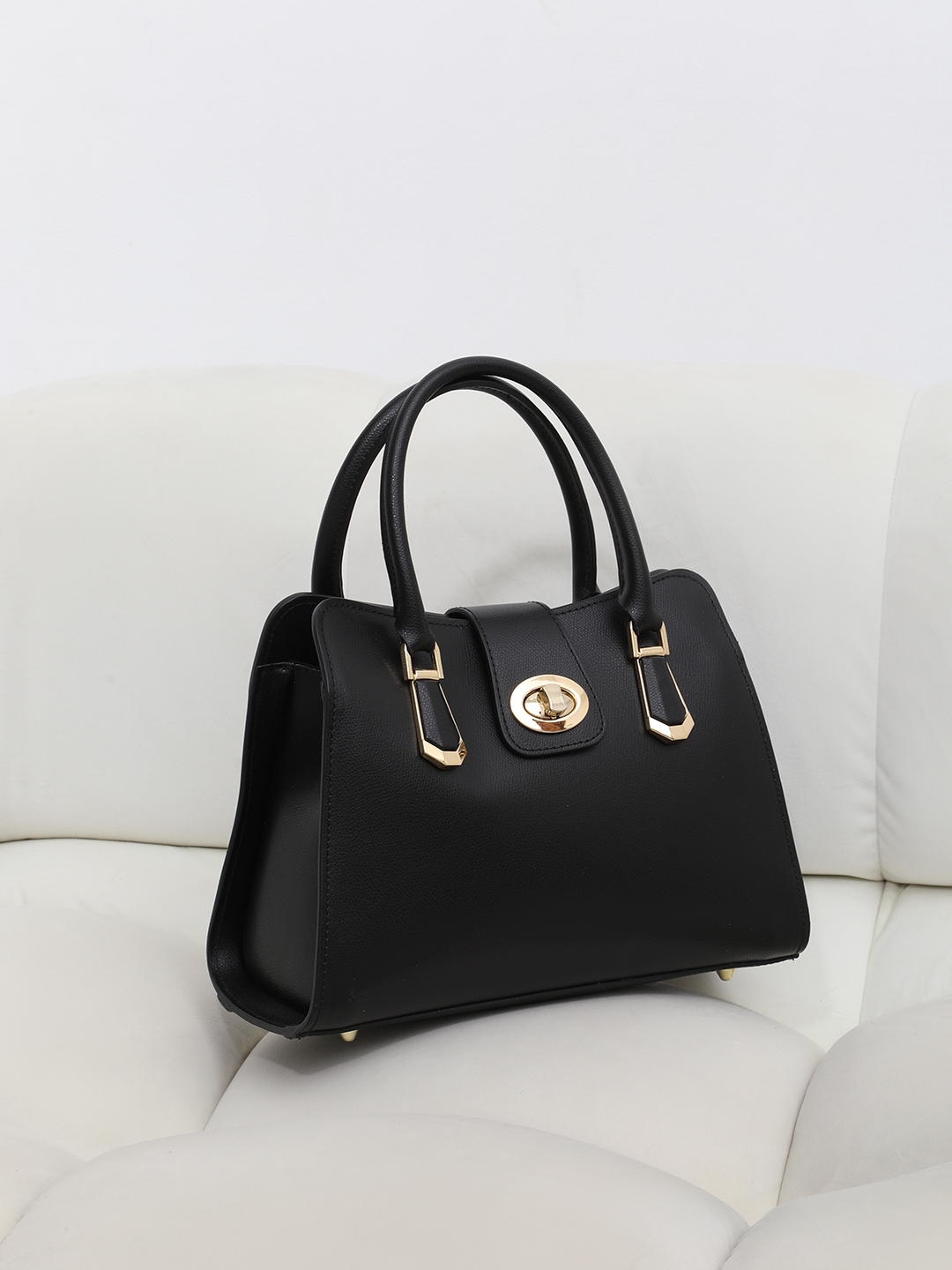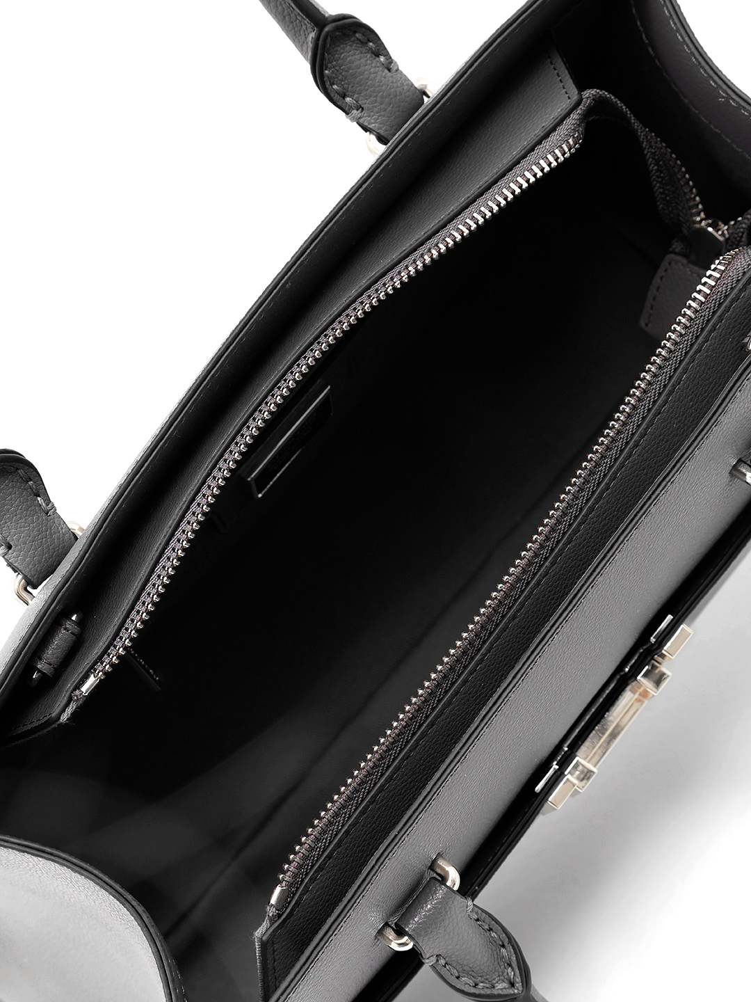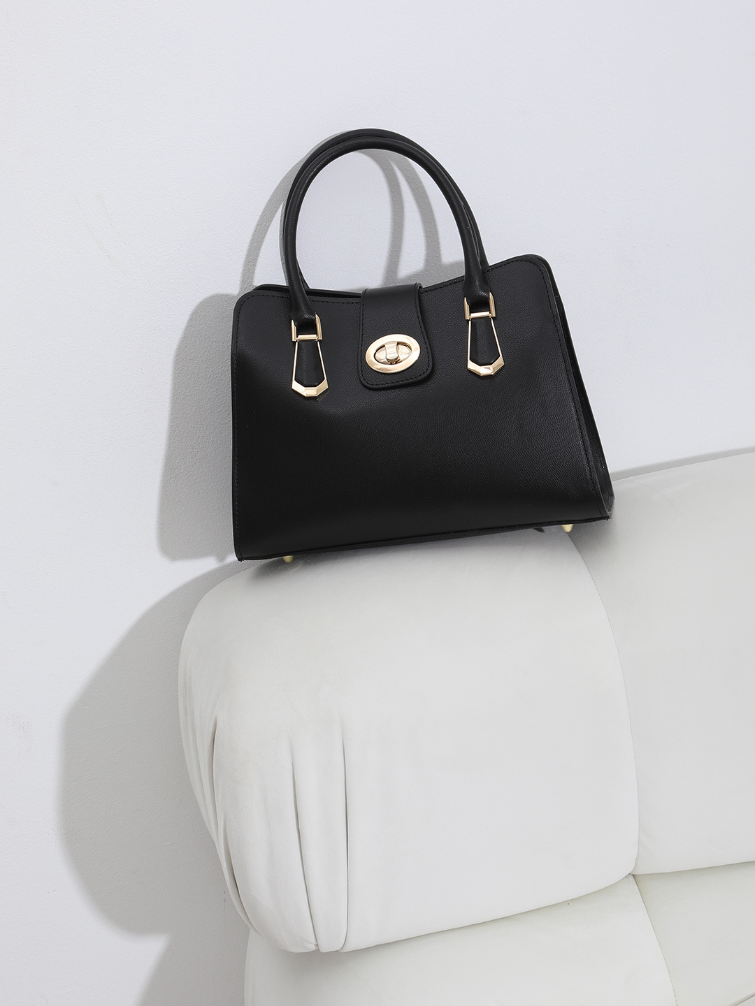 Сумка-тоут с поворотной золотистой фурнитурой от FOLLE в чёрном цвете