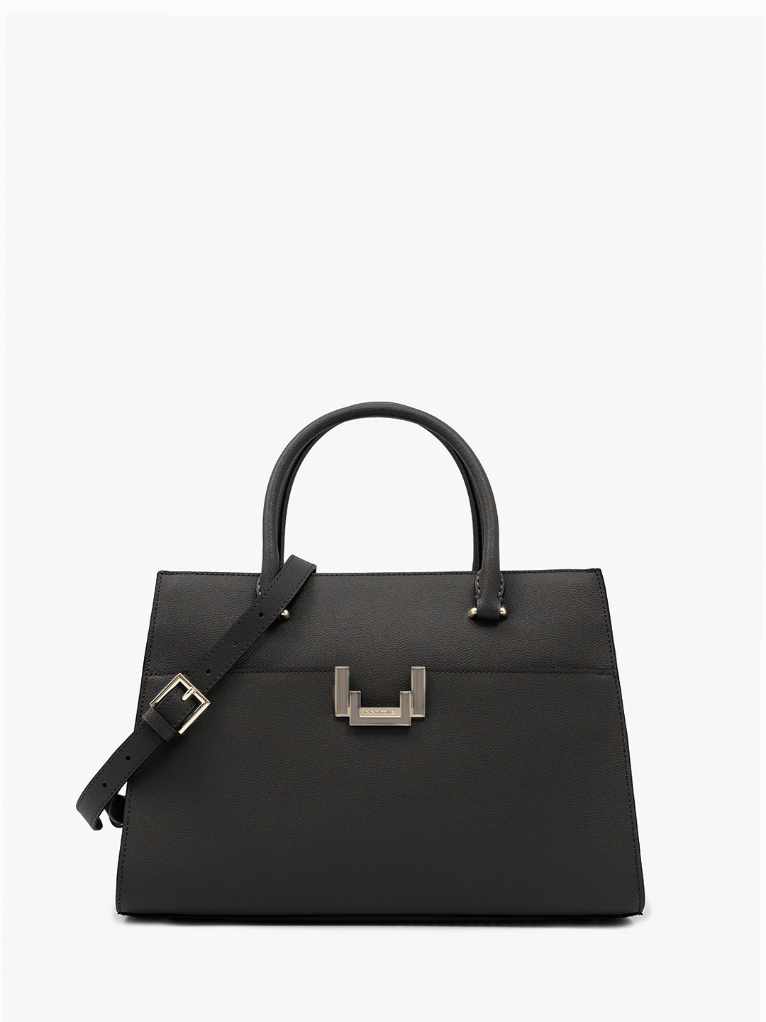 Тоут из натуральной кожи чёрного цвета с брендированной фурнитурой от CROMIA